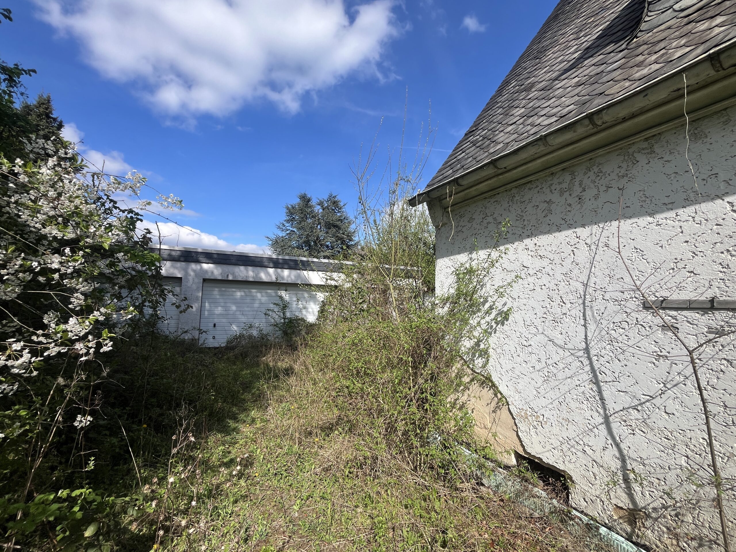 Aktuell ist Grundstück mit einem ursprünglich als Ein- oder Zweifamilienhaus nutzbaren Haus aus den 1950er Jahren u. separater Garagenanlage (2 Doppelgaragen, zusätzl. Lagerraum) bebaut.