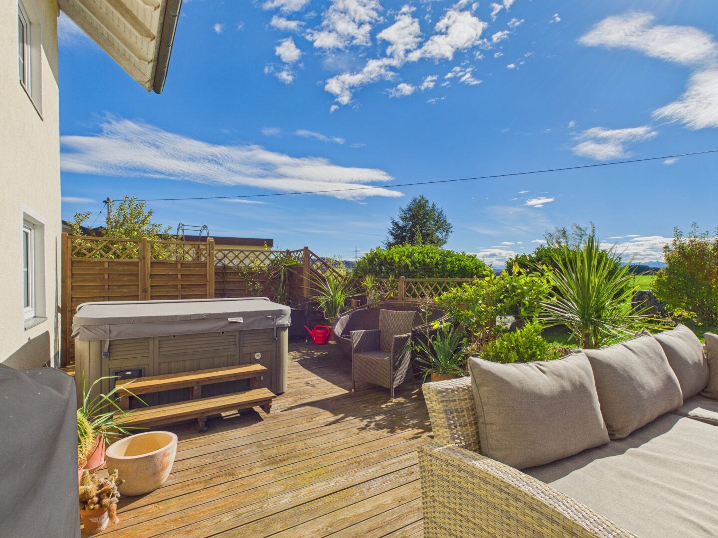 Das Highlight ist der unverbaubare Blick auf die Allgäuer Alpen und bei klarer Sicht bis hin zur Zugspitze. Zwei Balkone, ein Wintergarten sowie ein großzügiger Garten bieten hierfür ideale Rückzugsorte. Praktisch sind zudem die sechs Carport-Stellplätze, weitere sechs Außenstellplätze sowie Abstellräume für jede Wohnung.