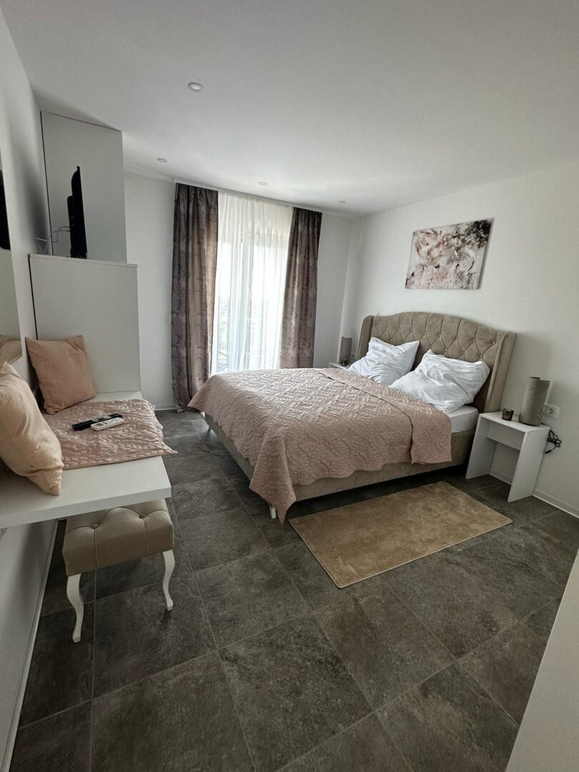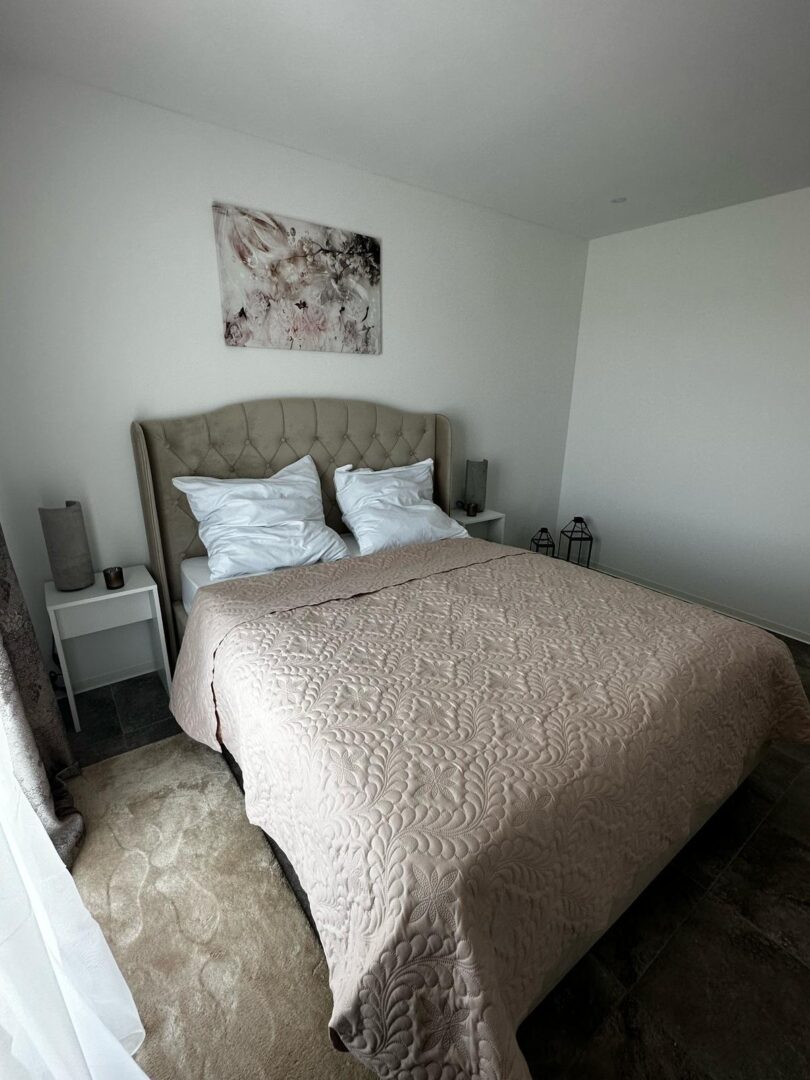 Im Innenbereich wurden ausschließlich hochwertige Materialien verbaut. Natursteinböden mit moderner Fußbodenheizung schaffen ein stilvolles und angenehmes Wohnklima. Beide Häuser sind mit einer effizienten Luft-/Wärmepumpe ausgestattet und somit bestens für den ganzjährigen Betrieb geeignet. Maßgefertigte Einbauschränke vom Schreiner sowie eine geschmackvolle, vollständige Möblierung unterstreichen den gehobenen Standard.