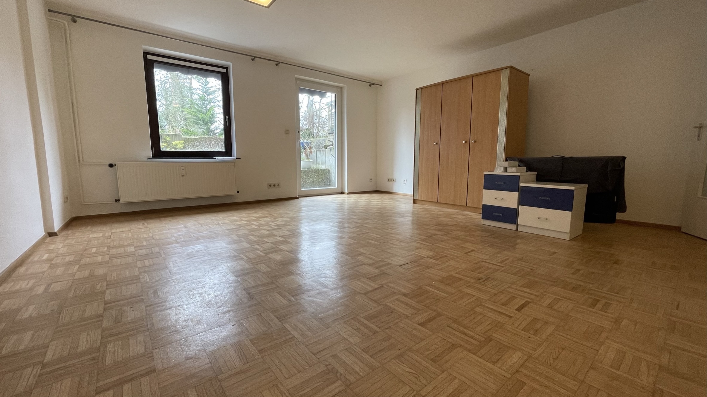In der größeren Wohnung eröffnen zwei lichterfüllte Zimmer und zwei weitere kleinere
