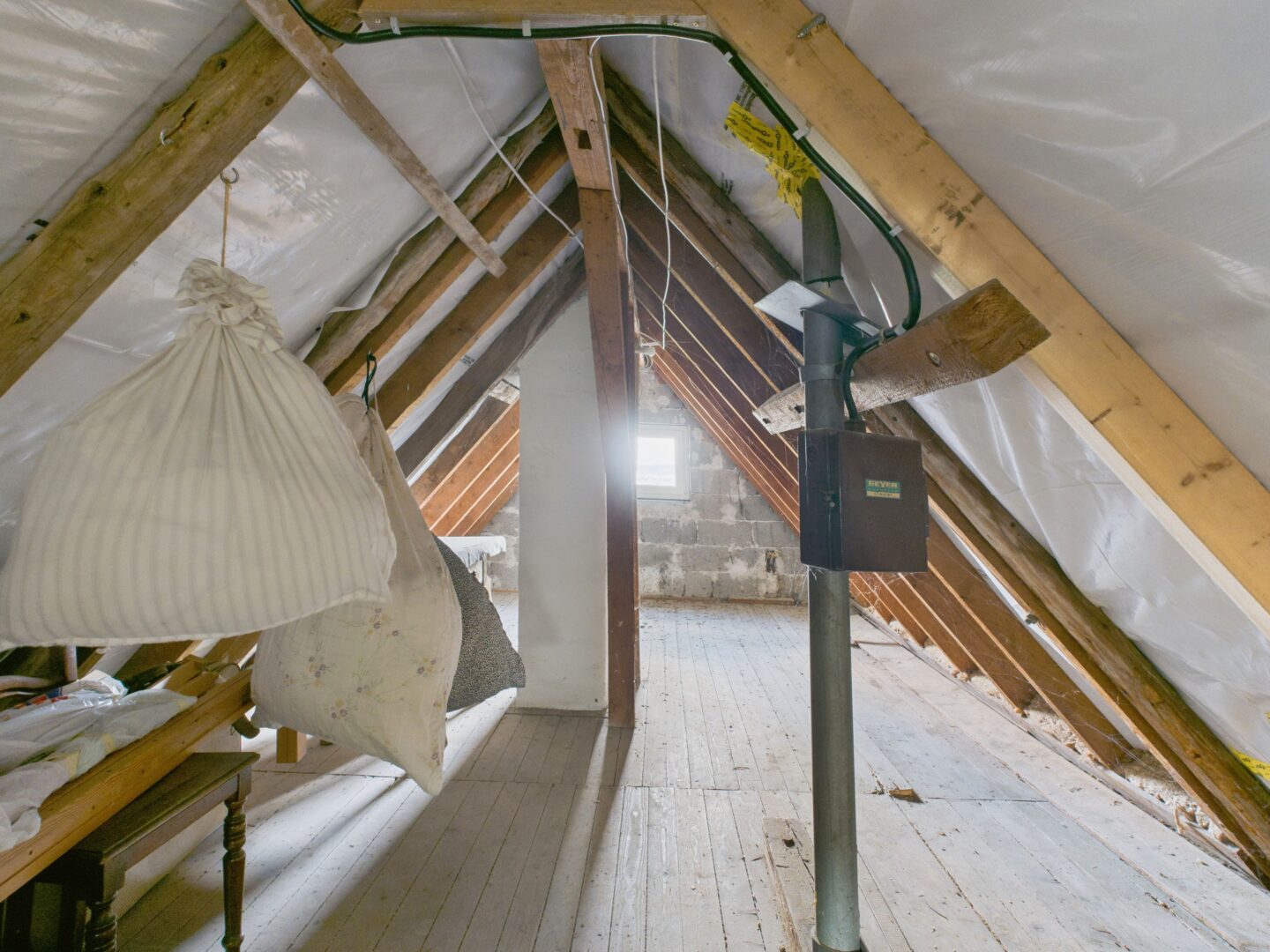 Bühne/Spitzboden: kann ausgebaut werden, Dachflächen-Fenster und Gauben möglich
