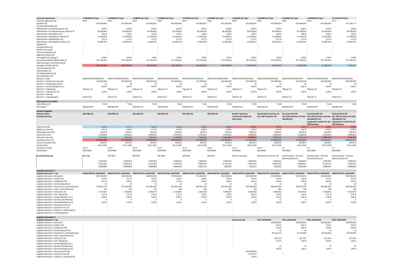Finanzierungsbeispiele mit unterschiedlichem Eigenkapital im Exposé