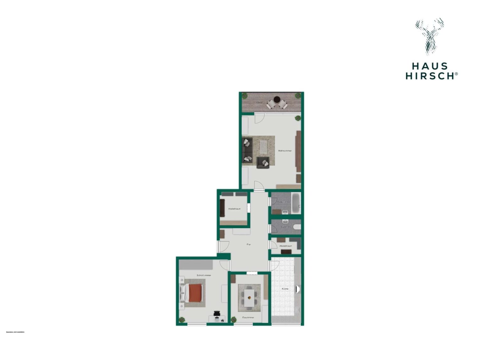 Die aktuelle Grundrissgestaltung bietet bereits ein großzügiges Raumgefühl, lässt sich aber auch flexibel an individuelle Wohnwünsche anpassen: