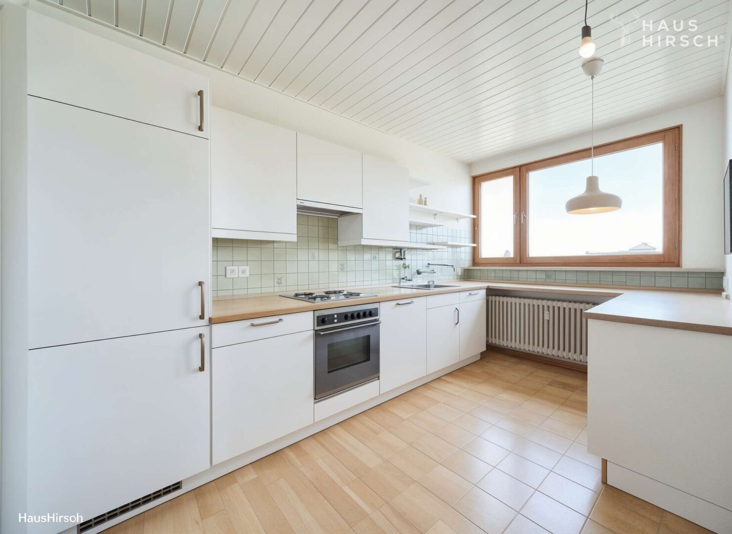 - Funktionale große Küche mit Fenster und Sitzgelegenheit
