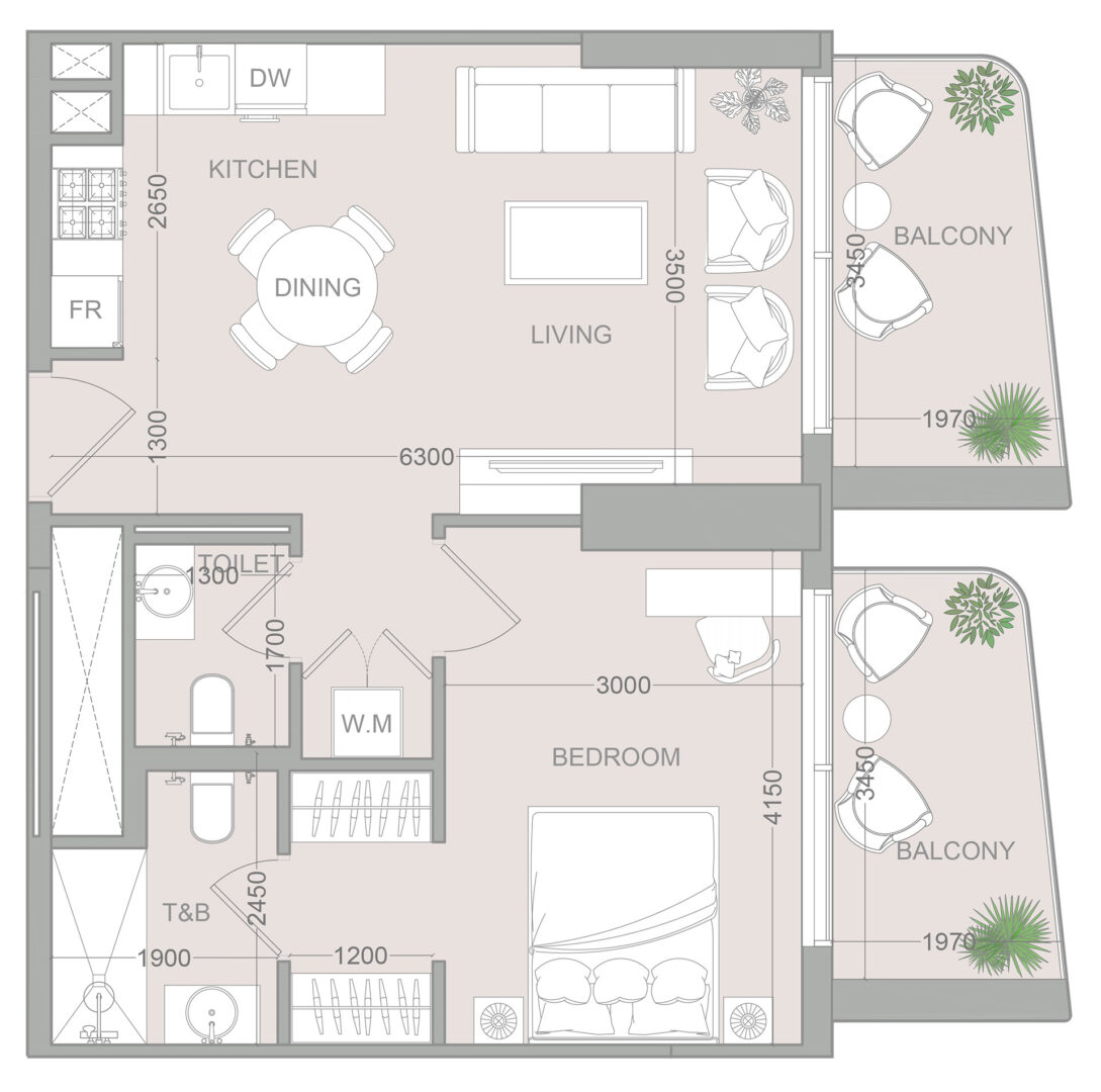 1-Schlafzimmer-Wohnung in „ELAR1S SKY“