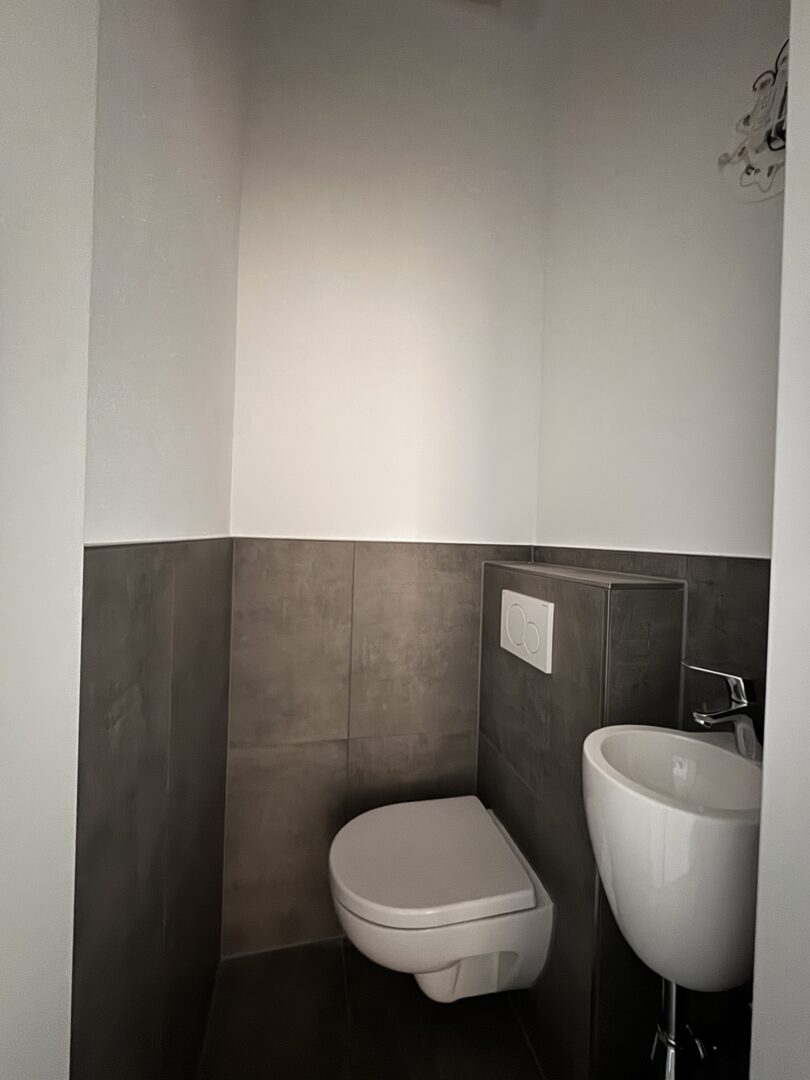 Bis Unterkante erstes Obergeschoss wurden Erd- und Kellergeschoss bis März 2026 vollständig saniert. In diesem Zuge wurden neben sämtlichen Leitungen und Oberflächen auch die straßenseitige Fassade neu gestaltet. Das Treppenhaus erhielt im unteren Bereich einen neuen Steinbelag sowie wandseitige Verfliesungen. Der Aufzug wurde technisch vollständig erneuert, ergänzt durch einen automatischen Rauchabzug. Der Garten wird aktuell neu angelegt.