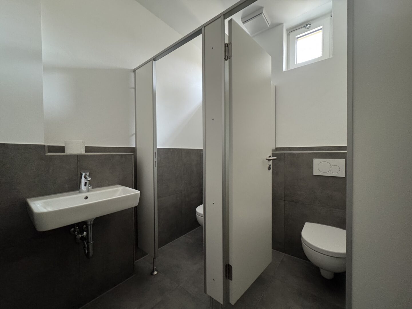 Im Zuge der Hochwassersanierung wurde diese Einheit vollständig und hochwertig neu aufgebaut: Sämtliche Elektro- und Sanitärinstallationen wurden erneuert, ebenso alle Fenster und Türen in Aluminium. Zwei Automatiktüren (Assa Abloy) sorgen für eine einladende Zugangssituation. Ergänzt wird dies durch ein vollständig ausgestattetes Eislabor sowie neue Sanitäranlagen. Für einen wirtschaftlichen Betrieb sorgt eine neue Gasheizung mit 300-Liter-Wasserspeicher und integrierter Wärmepumpe zur Wärmerückgewinnung.