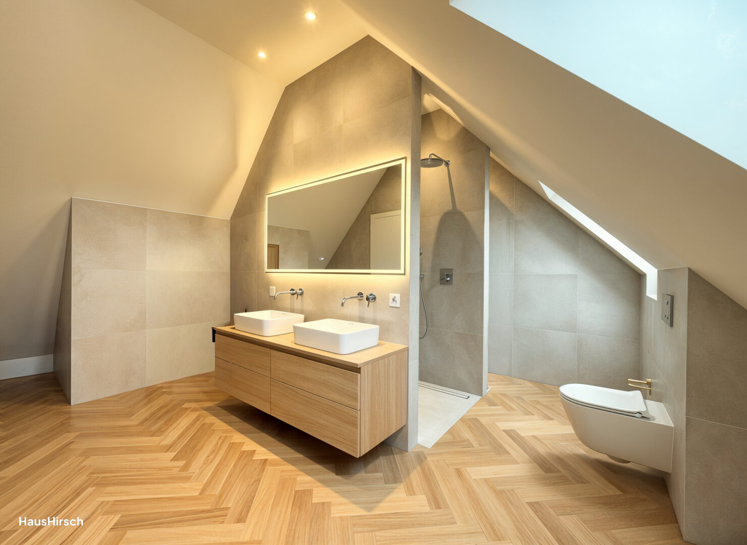Das Dach: Ein lichtdurchfluteter Raum, der sich flexibel Ihren Bedürfnissen anpasst. Ob als Bibliothek, zweites Wohnzimmer oder inspirierendes Home-Office – die Nutzung ist offen.
