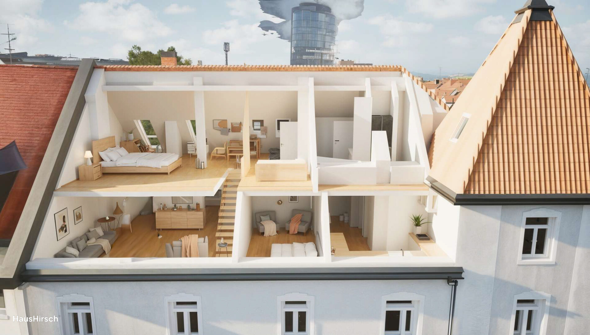 Stellen Sie sich vor, Sie betreten eine Wohnung, die es so kein zweites Mal gibt. Eine Wohnung, die nicht „von der Stange“ ist, sondern Ihre persönliche Handschrift trägt. Willkommen im Dach-Loft 1 in der Schulstraße.