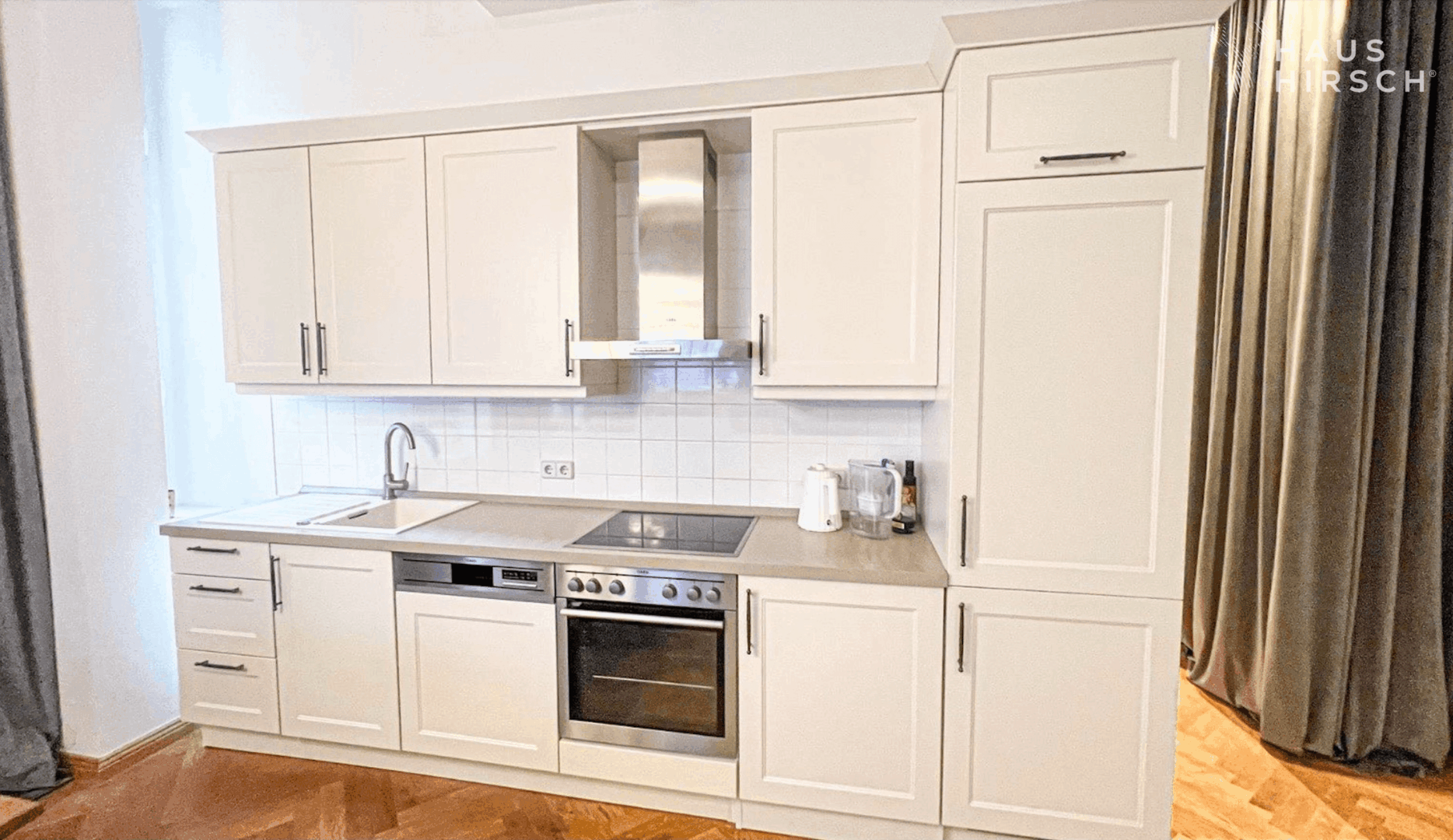 Die Wohnung wird komplett möbliert und ausgestattet angeboten, im Wert von ca. 30.000 €. Die maßgeschneiderten Möbel schaffen eine gemütliche Atmosphäre, die zum Entspannen einlädt. Das hell geflieste Bad mit moderner Duschwanne bietet Ihnen erfrischende Momente, während die voll ausgestattete Einbauküche ein funktionales und stilvolles Highlight darstellt. Hier können Sie Ihre Kochkünste im ansprechenden Design entfalten, bei dem Komfort und Ästhetik Hand in Hand gehen.