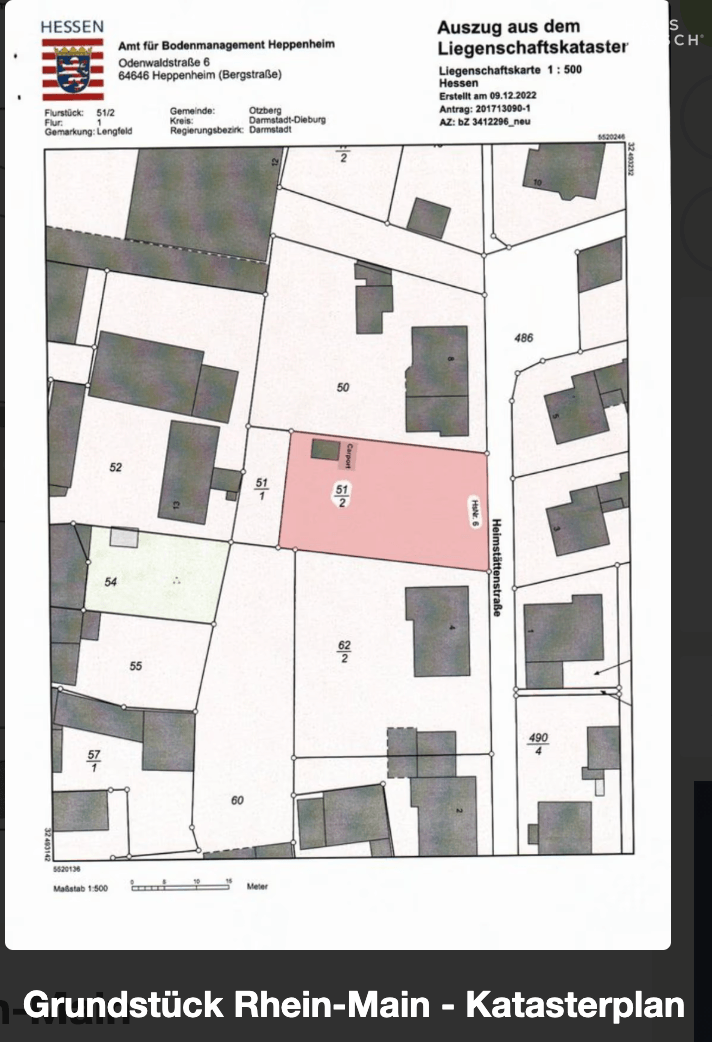 Unteres Grundstück eines größeren Baugrundstücks, erschlossen. Glasfaseranschluss verfügbar. Verkehrsanbindung an Frankfurt ca.45 min.
