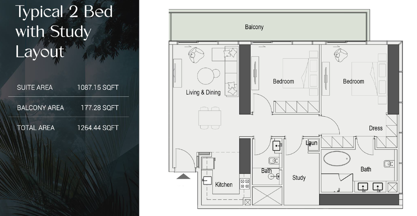 Wenn Sie dieses exquisite Apartment mit 2 Schlafzimmern und einem Arbeitszimmer betreten, werden Sie sofort von den luxuriösen Annehmlichkeiten begrüßt, die Ihnen für Ihre Wellness- und Fitnessbedürfnisse zur Verfügung stehen. Die Pools für Erwachsene und Kinder, der Wassergarten, das Planschbecken und der Sandstrand bieten einen ruhigen Ort der Entspannung. Das hochmoderne Fitnesscenter und der Fitnessraum im Freien bieten den perfekten Rahmen für Ihr Trainingsprogramm. Entspannen Sie sich nach einem langen Tag in der Sauna, im Dampfbad, im Kaltwasserbecken oder im Whirlpool, oder machen Sie einen gemütlichen Spaziergang auf der Joggingstrecke.