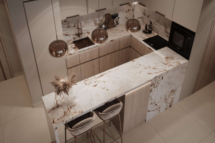 Die Wohnung verfügt über einen anspruchsvollen Einrichtungsstil, der zeitgenössische Eleganz ausstrahlt. Die Einbauküche ist sowohl stilvoll als auch funktional, was sie zu einem Genuss für jeden kulinarischen Enthusiasten macht.