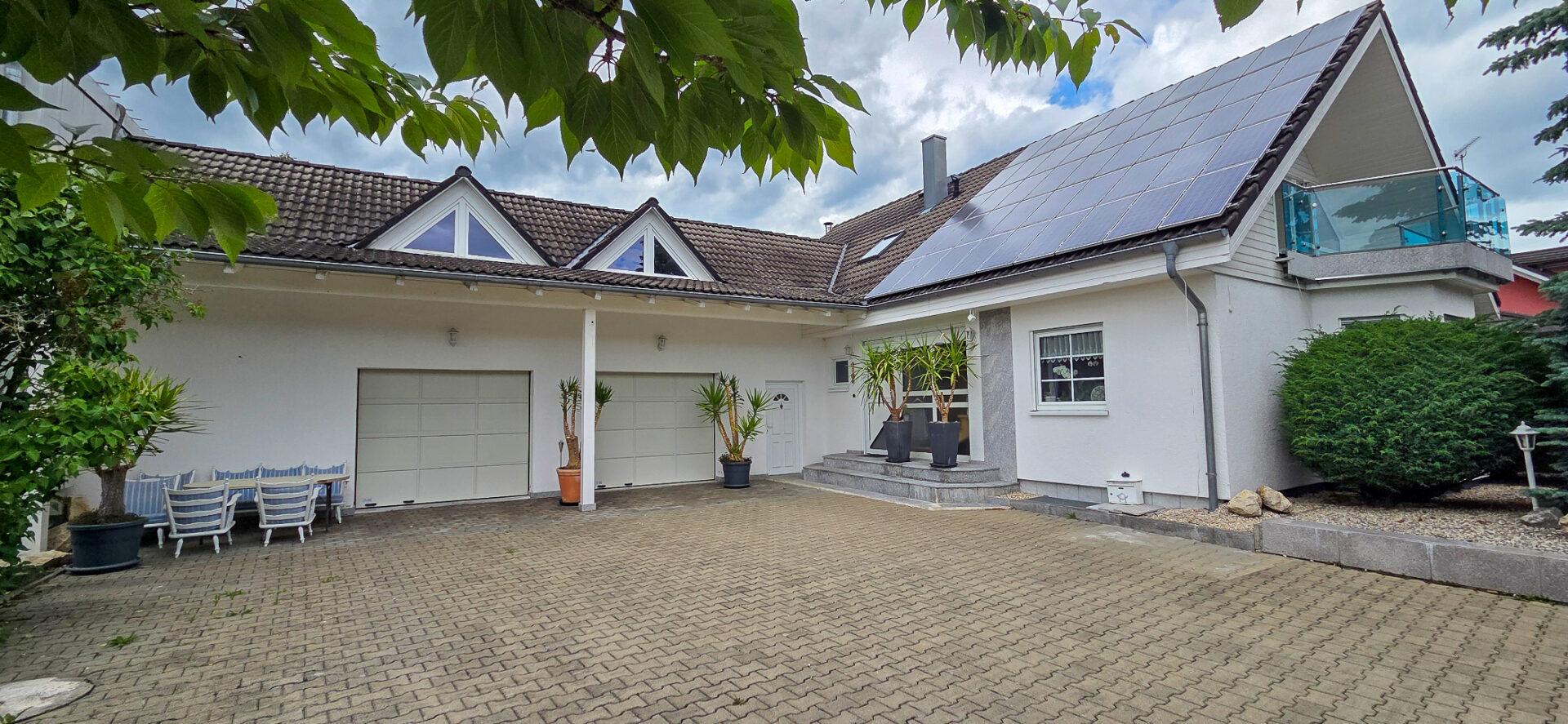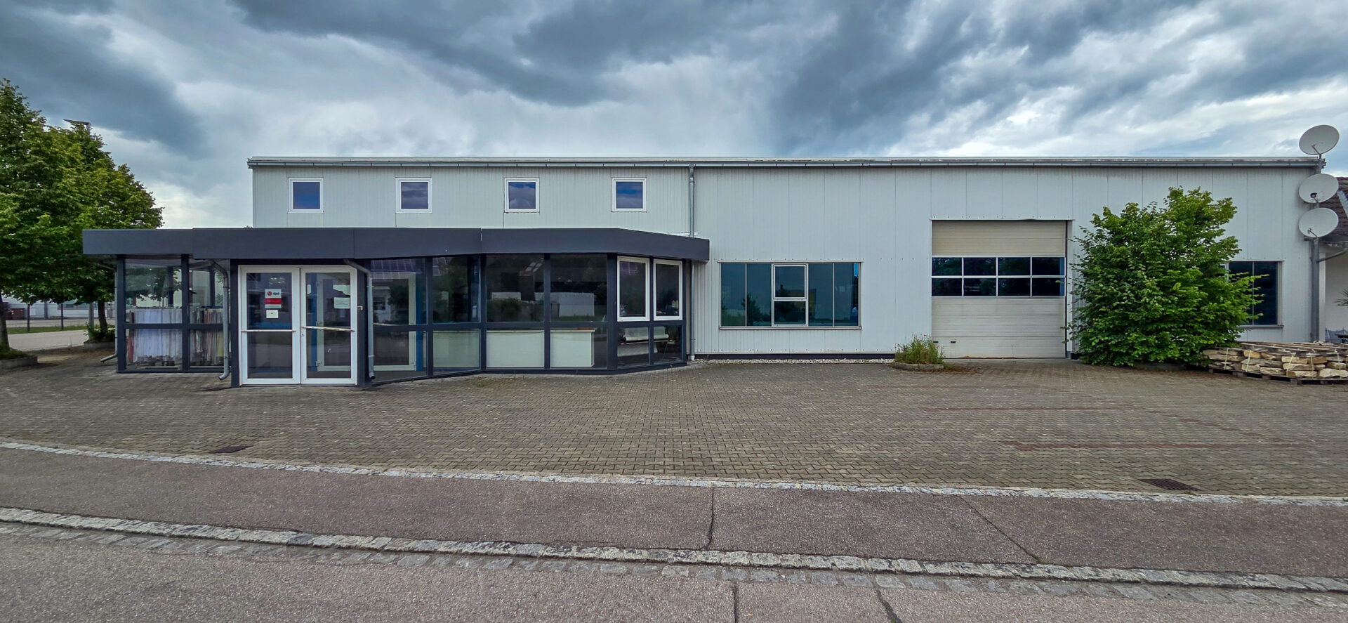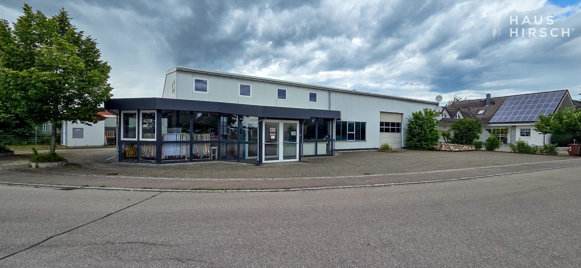 Zum Verkauf steht eine außergewöhnlich vielseitige Immobilie im Gewerbegebiet von Untermeitingen (Landkreis Augsburg), die Arbeiten und Wohnen in idealer Weise miteinander verbindet. Auf einem großzügigen Grundstück von 1.920 m² wurde im Jahr 2000 ein Ensemble bestehend aus einer großzügigen Gewerbehalle mit Büro und Verkaufsfläche sowie einem direkt angebundenen Zweifamilienhaus mit Doppelgarage errichtet.