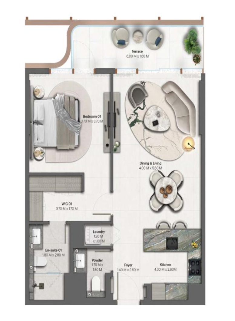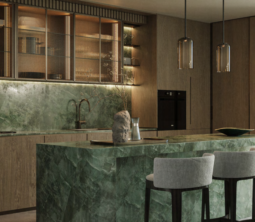 Mit einer offenen Küche ist diese Wohnung für die nahtlose Unterhaltung und das tägliche Leben konzipiert. Stellen Sie sich vor, wie Sie köstliche Mahlzeiten zubereiten, während Sie den Panoramablick auf den glitzernden Ozean genießen.