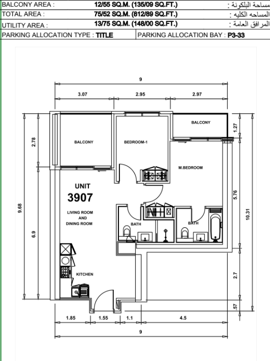 Die Wohnung verfügt über moderne Annehmlichkeiten wie eine Waschmaschine und einen Trockner, eine Zentralheizung und eine Klimaanlage sowie reichlich Stauraum. Das Gebäude bietet außerdem Annehmlichkeiten wie ein Fitnesscenter, einen Swimmingpool und sichere Parkplätze.