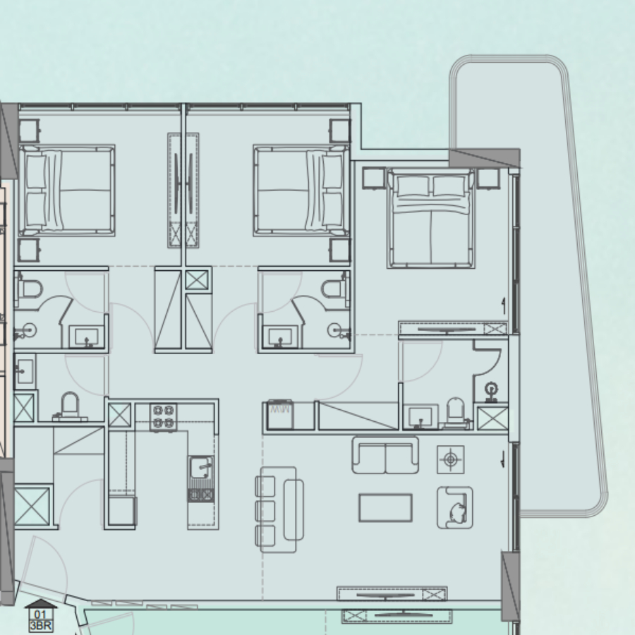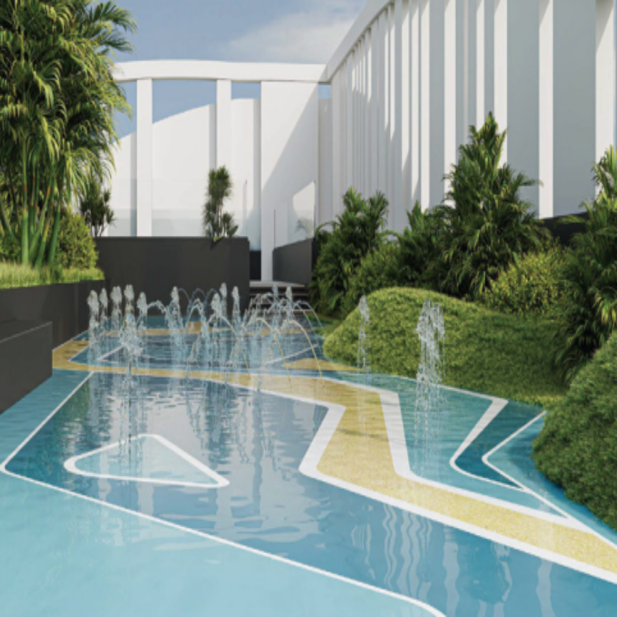 Die Wohnung verfügt über erstklassige Annehmlichkeiten, darunter ein temperaturgesteuertes Schwimmbad mit Kinderbecken und Baja-Regalen zum Entspannen. Sie können auch die BBQ-Lounge auf dem Dach genießen, die sich perfekt für Treffen mit Freunden und Familie eignet. Das versunkene Meditationsdeck und die Zen-Wanderwege bieten einen friedlichen Rückzugsort von der Hektik der Stadt.