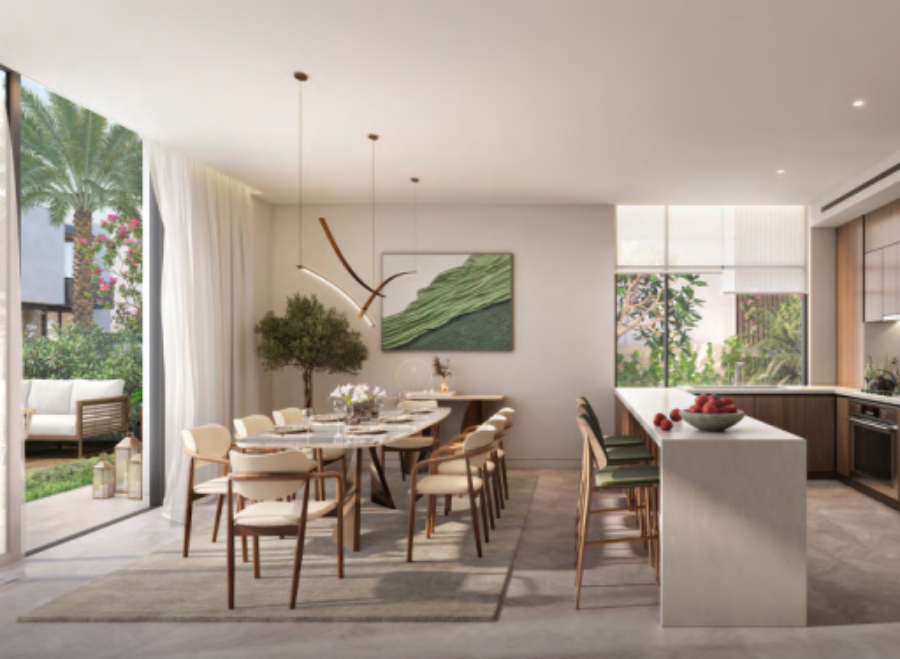 Wenn Sie diese atemberaubende Wohnung mit fünf Schlafzimmern im Athlon by Aldar Properties in Dubailand betreten, werden Sie von einem Gefühl von Luxus und Wellness begrüßt. Der geräumige Wohnbereich ist perfekt, um Gäste zu empfangen oder sich einfach mit der Familie zu entspannen. Die großen Fenster bieten viel natürliches Licht und einen schönen Blick auf die umliegenden Grünflächen und Gemeinschaftseinrichtungen.