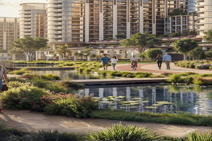 Wenn Sie die Villa mit fünf Schlafzimmern im Sobha Sanctuary in Dubailand betreten, werden Sie von einem Gefühl der Ruhe und des Wohlbefindens begrüßt. Die Wohnanlage mit geringer Dichte wurde mit Blick auf Ihr Wohlbefinden entworfen und verfügt über einen weitläufigen, 800.000 m² großen zentralen Park, der als Herzstück des Viertels dient. Kristallene Lagunen und 40 % offene Grünflächen schaffen eine ruhige Atmosphäre, in der Sie sich entspannen und mit der Natur verbinden können.
