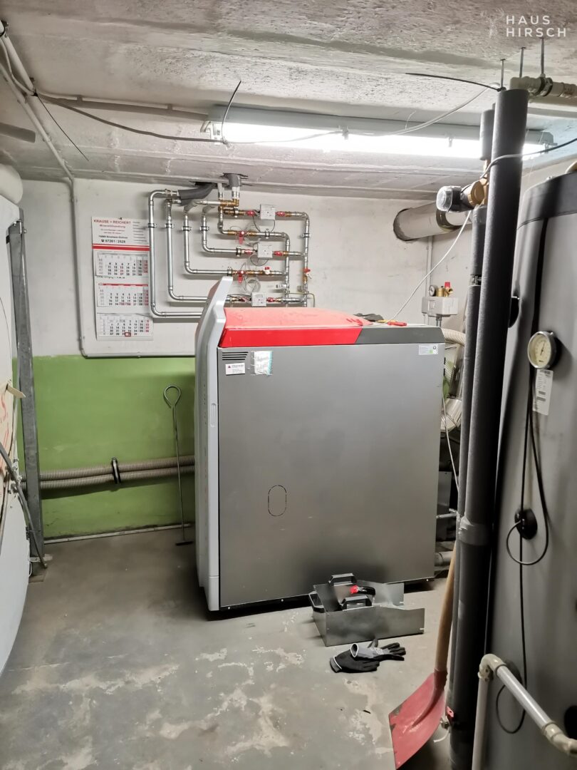 Eine Holz-Pelletheizung sorgt für effiziente und umweltfreundliche Wärmeversorgung. Ergänzt wird das Angebot durch eine Garage, einen Außenstellplatz sowie Kellerräume für zusätzlichen Stauraum.