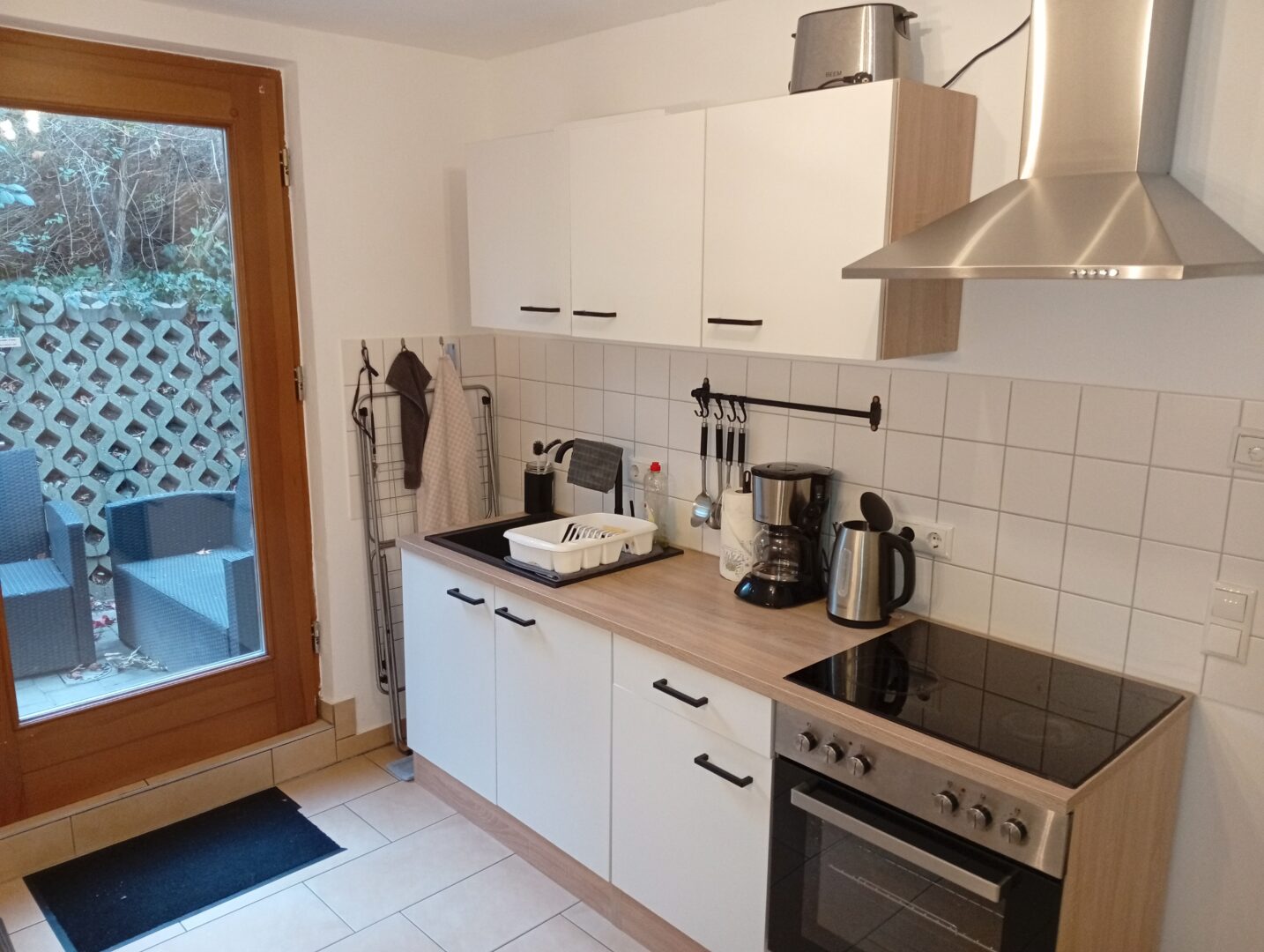 Die Wohnung verfügt über einen separaten Eingang und bietet Terrasse, Garten und Stellplatz direkt am Haus.
