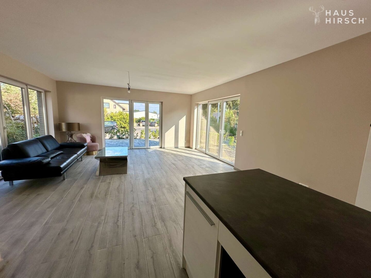 Die großzügigen Fensterfronten lassen den Raum in hellem Licht erstrahlen und schaffen eine einladende Atmosphäre für gemütliche Stunden mit Ihren Liebsten. Die hochwertige Ausstattung von edlen Böden bis hin zu modernen Badezimmern bietet Komfort und Luxus für Ihr tägliches Leben.