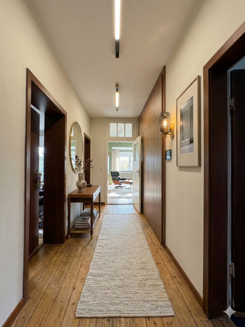 - klassische Altbauelemente (u. a. Holzdielen, hohe Decken, Holztreppe)