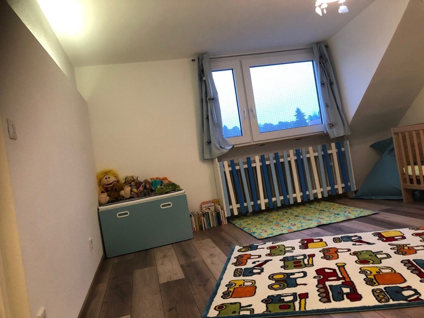 Im ersten Obergeschoss finden Sie eine baugleiche Wohnung wie im Erdgeschoss, jedoch ohne Flur. Neben einem Kinderzimmer, einem geräumigen Wohnzimmer, einem weiteren Bad und einer Hauswirtschaftsraum, lädt die große Küche zum Entspannen ein. Diese Wohnung ist mit dem Dachgeschoss verbunden, in dem sich ein kleiner Flur, zwei Zimmer und ein Bad mit Eckbadewanne befinden. Das Dachgeschoss könnte auch als eigenständige Wohnung vermietet werden, was zusätzliche Einnahmen für Sie generieren könnte.
