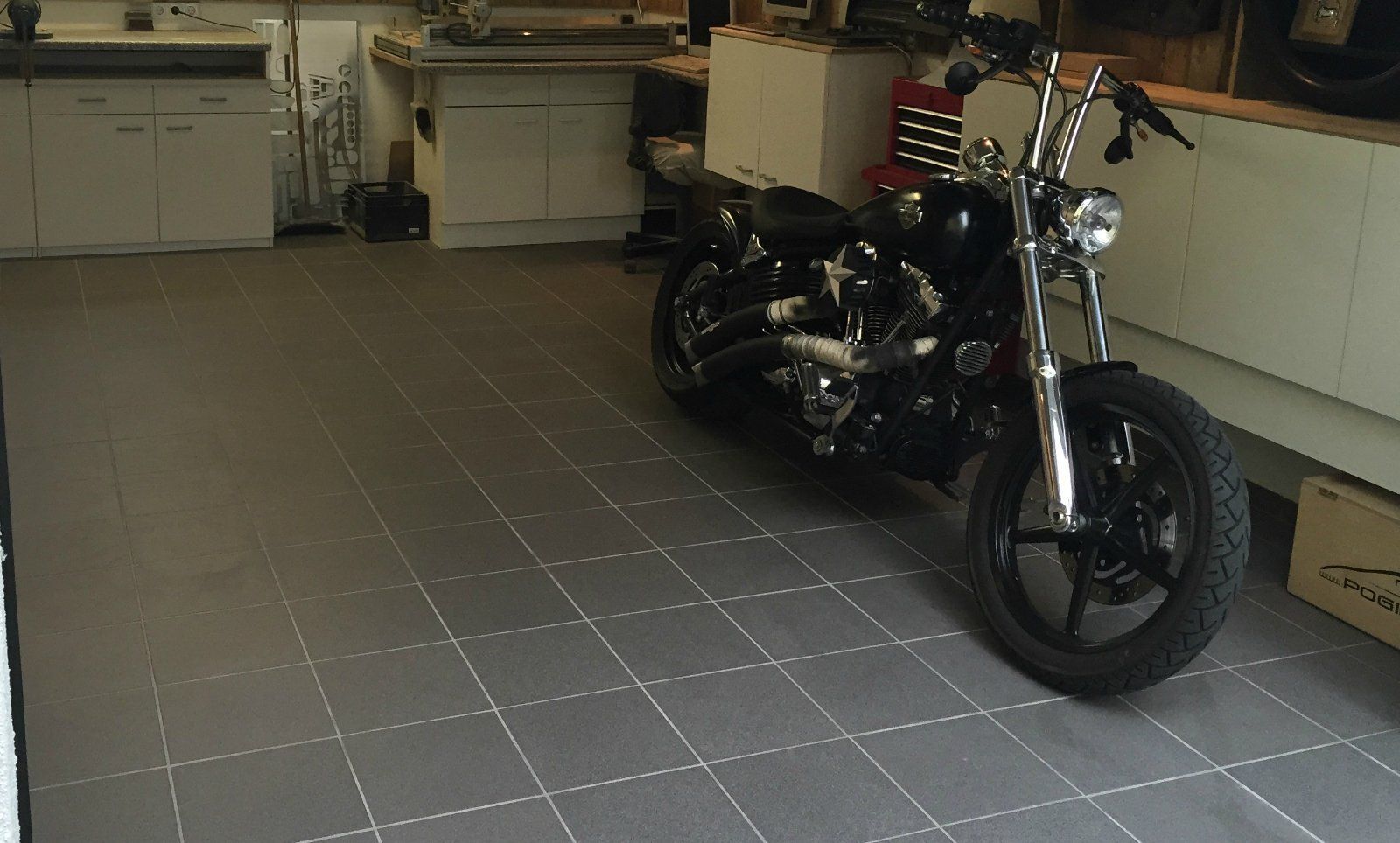 Die massiv gebaute Garage im Hof bietet Platz für 2-3 Autos und dient zugleich als Männerparadies mit elektrischem Tor, Rigipsdecke, Waschbecken und ausreichend Steckdosen.