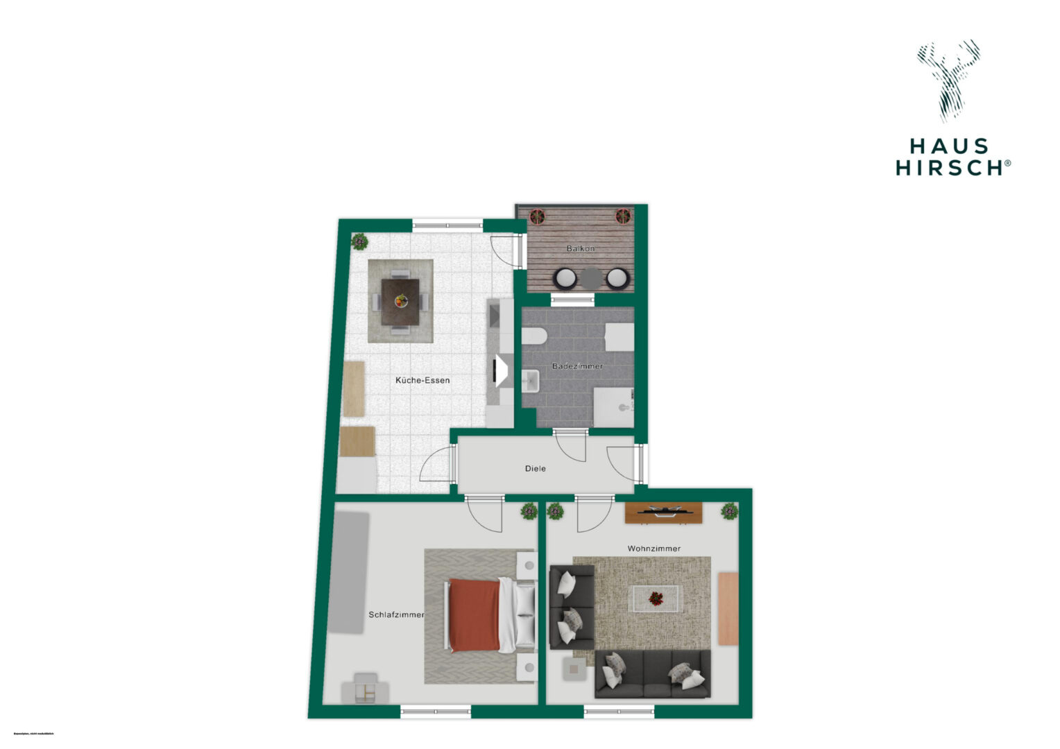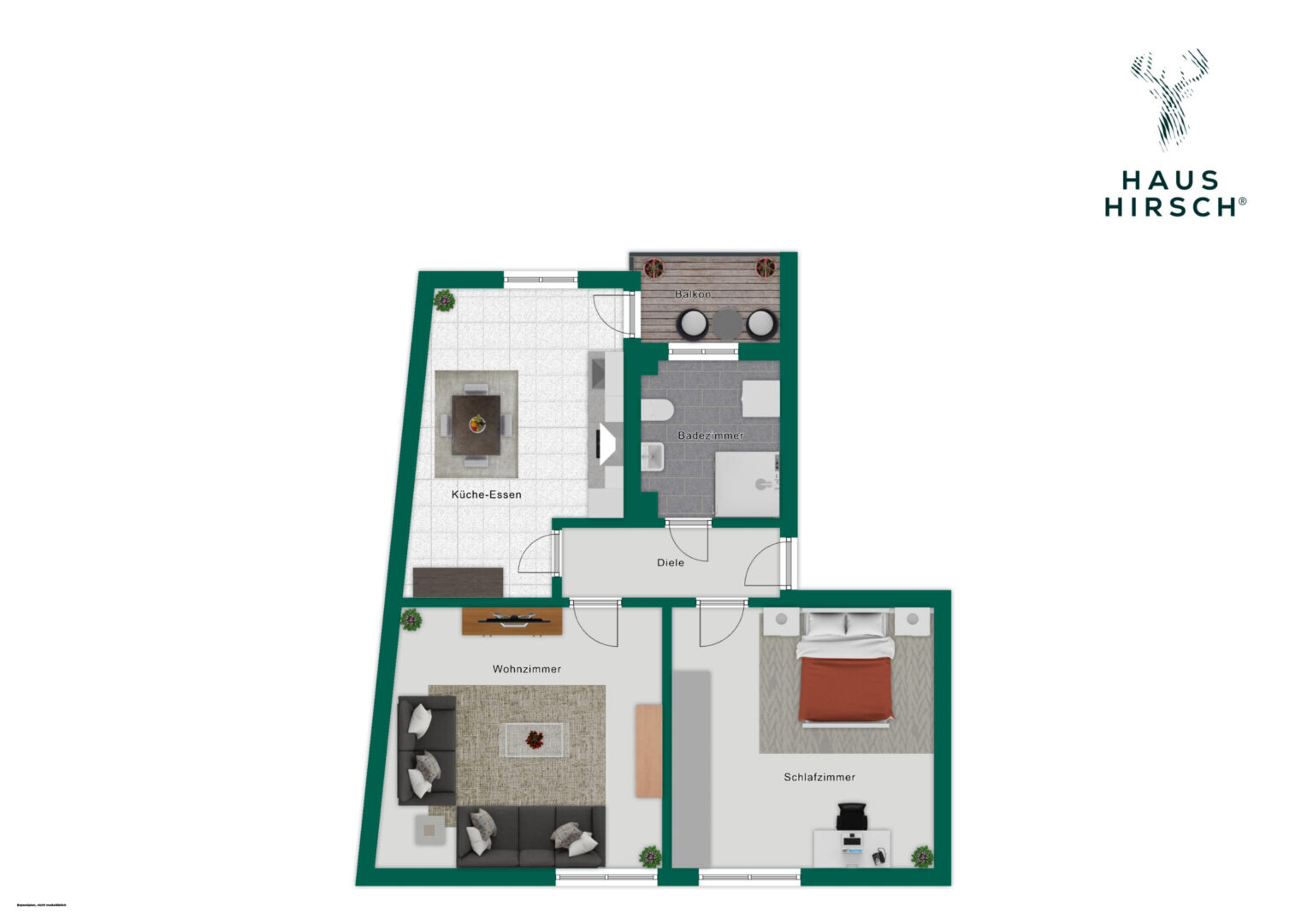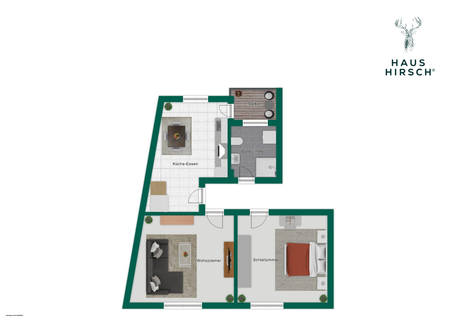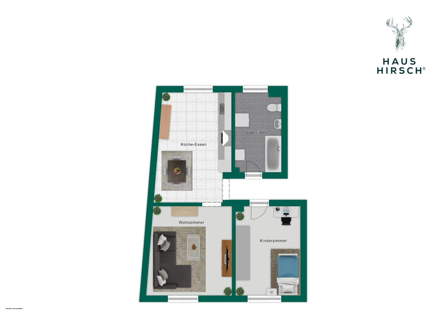 •Erdgeschoss: 2-Zimmer-Wohnung, ca. 51 m²