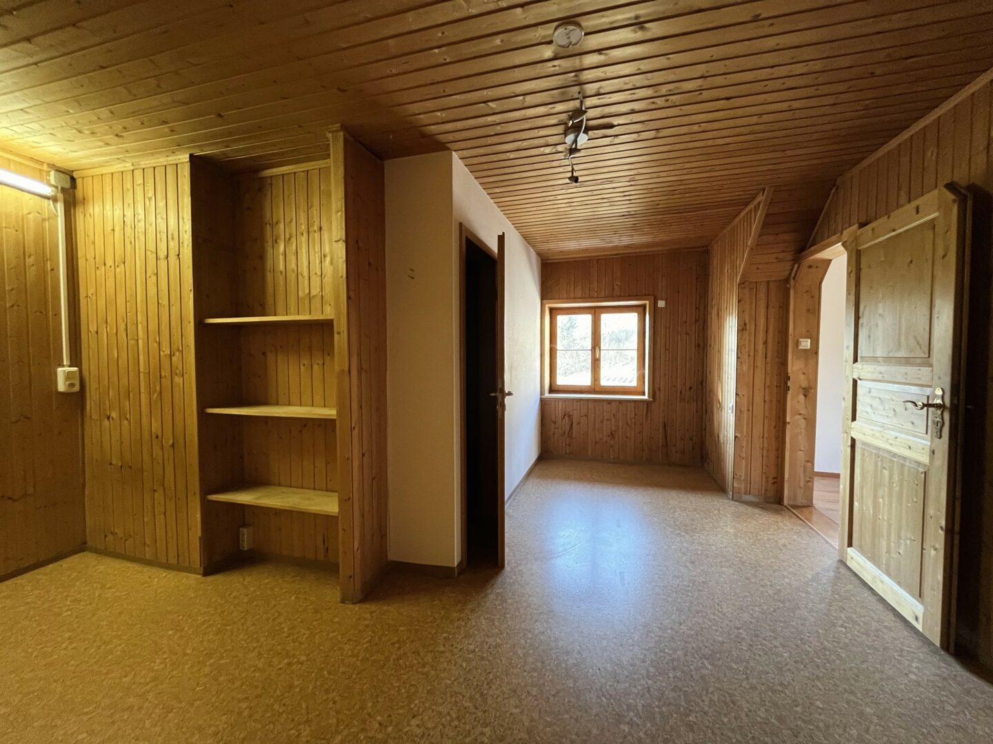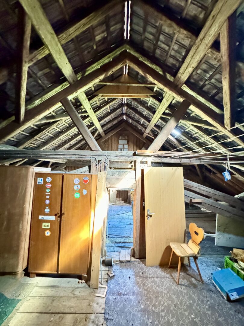 Das Dachgeschoss befindet sich aktuell im Rohzustand und bietet enormes Ausbaupotenzial, hier könnten zwei große Zimmer oder eine charmante Dachloggia entstehen, von der aus Sie einen herrlichen Blick auf die umliegenden Wiesen und den Berg genießen. Gestalten Sie diesen Bereich ganz nach Ihren eigenen Vorstellungen, ob als Rückzugsort, Atelier oder zusätzlicher Wohnraum.