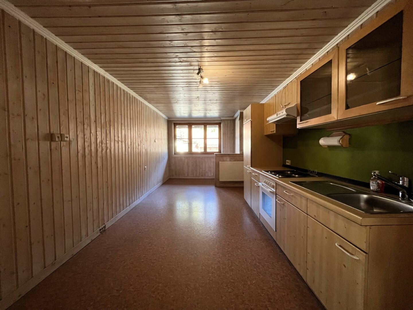 Das 1. Obergeschoss beherbergt eine großzügige Wohnung mit separatem Eingang. Vier helle Zimmer, eine Einbauküche, ein Balkon mit Blick ins Grüne sowie eine interne Treppe ins Dachgeschoss schaffen ein harmonisches Wohngefühl mit viel Platz für Familie, Arbeiten oder Gäste.