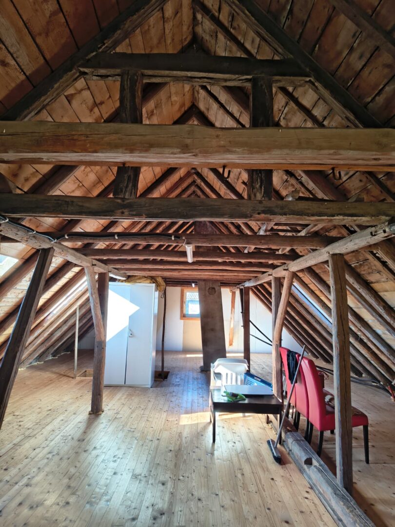 Ein besonderes Highlight stellt das Dachgeschoss mit ca. 140 m² isolierter, offener Fläche dar. Diese Ebene bietet enormes Ausbau- und Gestaltungspotenzial – ob als Atelier, Wellnessbereich, Fitnesszone oder repräsentativer Rückzugsort.