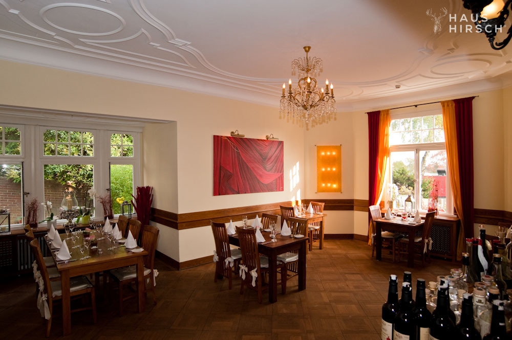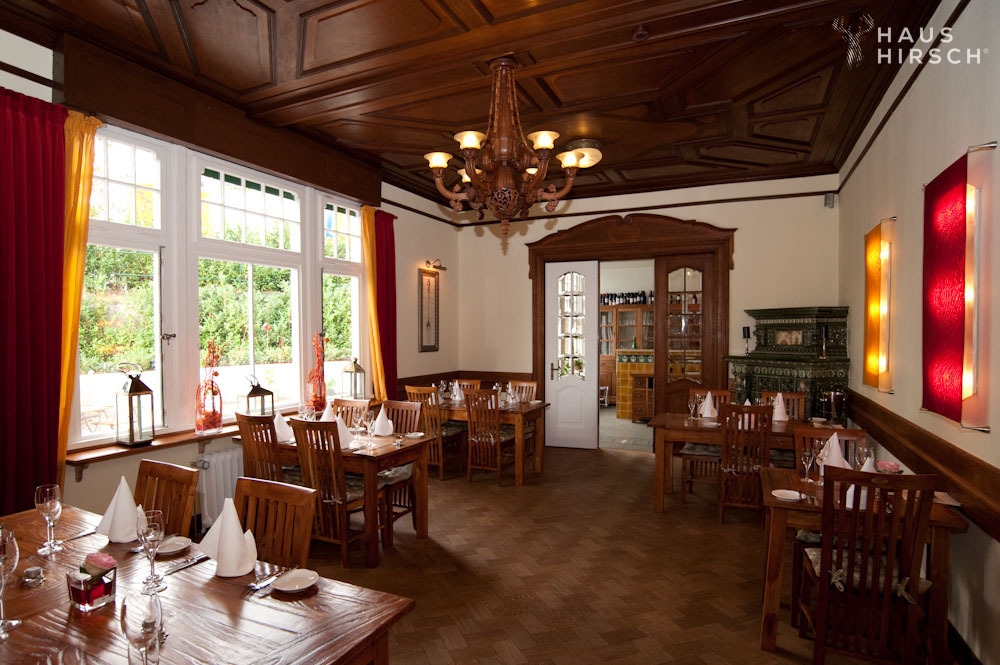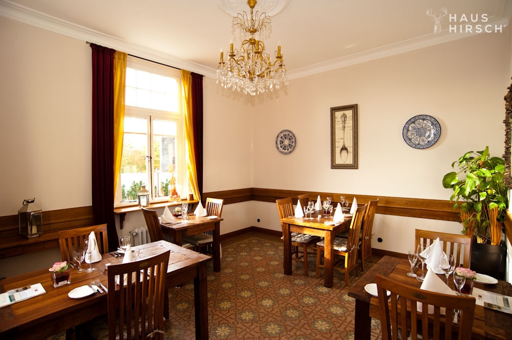 Im Erdgeschoss befindet sich das gemütliche Restaurant, in dem Sie kulinarische Köstlichkeiten in historischem Ambiente genießen können.