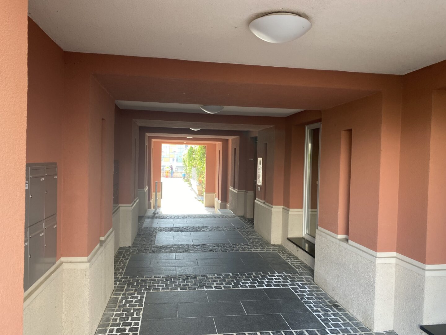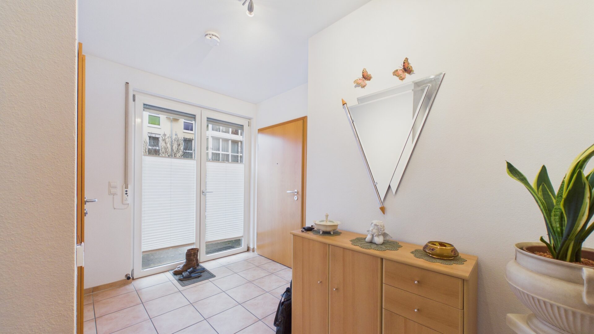 Die Wohnung verfügt über zwei Schlafzimmer, ein separates Ankleide‑/Garderobenzimmer, ein barrierefreies Badezimmer sowie eine großzügige Terrasse mit ca. 17 m², die zusätzlichen Lebensraum im Freien bietet.