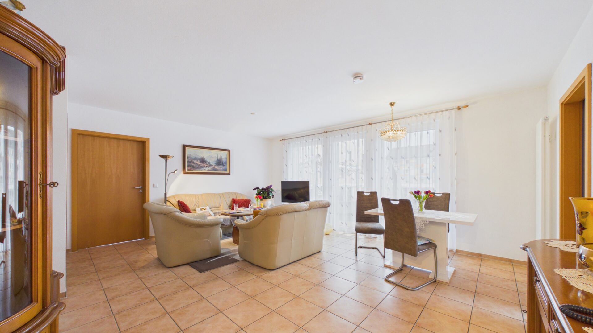 Diese vollständig barrierefreie Wohnung bietet auf ca. 76 m² ein modernes, sicheres und komfortables Zuhause. Ein besonderes Highlight ist das wunderschöne, große und sehr helle Wohnzimmer, das durch seine offene Gestaltung und die großen Fensterflächen eine warme, einladende Atmosphäre schafft. Hier entsteht ein Wohngefühl, das sofort überzeugt.