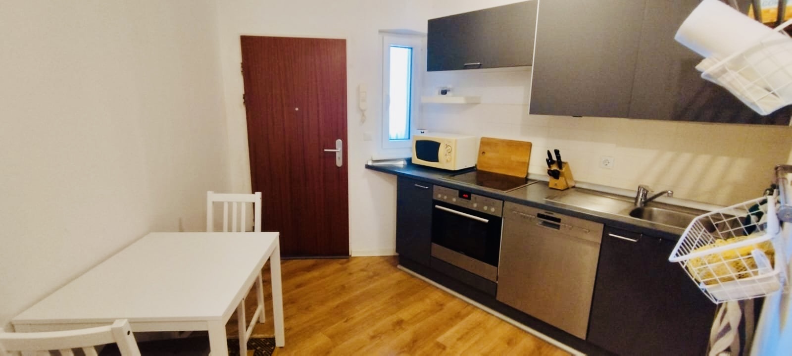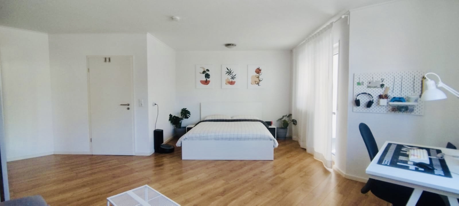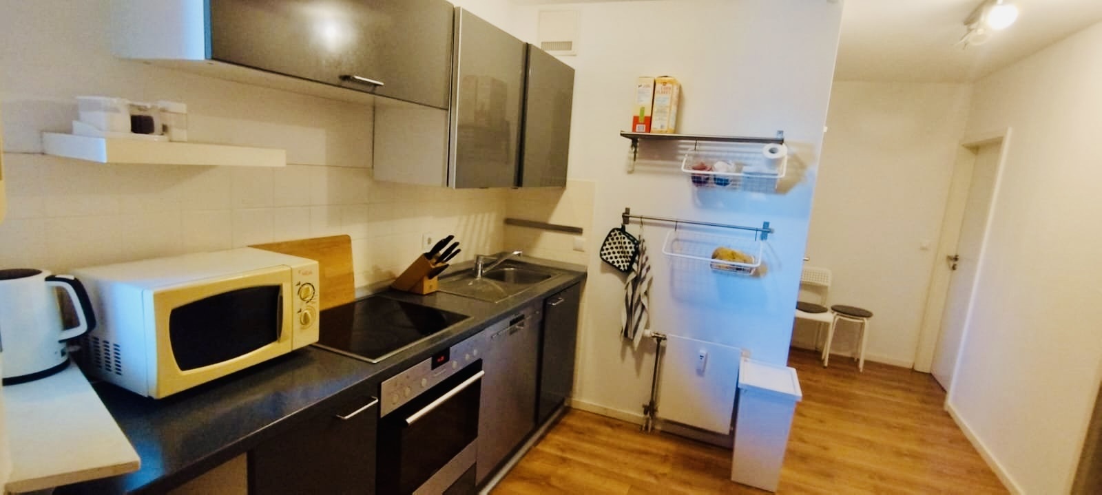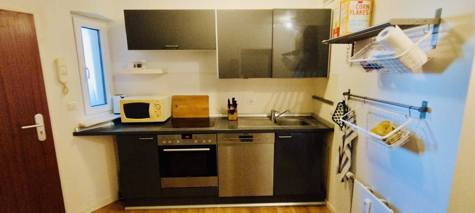 Willkommen in Ihrer neuen Wohlfühloase! Dieses sanierte 1,5-Zimmer-Apartment in der Hansaallee 162 strahlt Charme und Gemütlichkeit aus. Jede Ecke der 46 Quadratmeter großen Wohnung ist sorgfältig genutzt, um ein Maximum an Komfort und Funktionalität zu bieten. Beim Betreten der Wohnung werden Sie von einem hellen und freundlichen Flur begrüßt, der genügend Raum für eine Garderobe bietet. Von hier aus gelangen Sie in das geräumige Wohnzimmer, das durch seine Helligkeit und den direkten Zugang zur Terrasse besticht. Ein großes Fensterelement sorgt für viel Tageslicht und eröffnet den Blick auf die großzügige Terrasse – ein privates Outdoor-Paradies, das zum Entspannen und Genießen einlädt. Die angrenzende offene Küche ist mit einer modernen Einbauküche ausgestattet. Hier finden Sie ausreichend Platz zum Kochen und Genießen. Der separate Schlafbereich bietet ausreichend Raum für ein großes Bett und einen Kleiderschrank. Das sanierte Badezimmer ist hell gefliest und mit einer Dusche, einem Waschbecken und einem WC ausgestattet. Ein besonderes Highlight dieser Wohnung ist die Barrierefreiheit. Sowohl der Aufzug als auch die Wohnung selbst sind für Menschen mit eingeschränkter Mobilität gut zugänglich. Zudem gehört zu der Wohnung ein Kellerabteil, das zusätzlichen Stauraum bietet. Ein weiterer Pluspunkt ist der zugehörige Duplex-Tiefgaragenstellplatz, der im Kaufpreis inbegriffen ist. Dieses attraktive Angebot wird durch die Möglichkeit abgerundet, die Wohnung vermietet oder unvermietet zu erwerben, was sie auch zu einer interessanten Kapitalanlage macht.