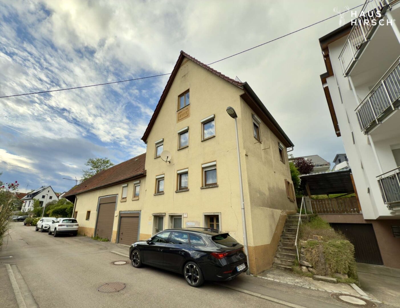 Aktuell befindet sich auf dem Grundstück ein älteres Wohnhaus mit großer Scheune, das modernisierungsbedürftig oder abrissfähig ist. Die wertvolle Hanglage eröffnet ideale Voraussetzungen für eine mehrgeschossige Bebauung mit Garten- und Terrassenflächen sowie Südwest-Ausrichtung.