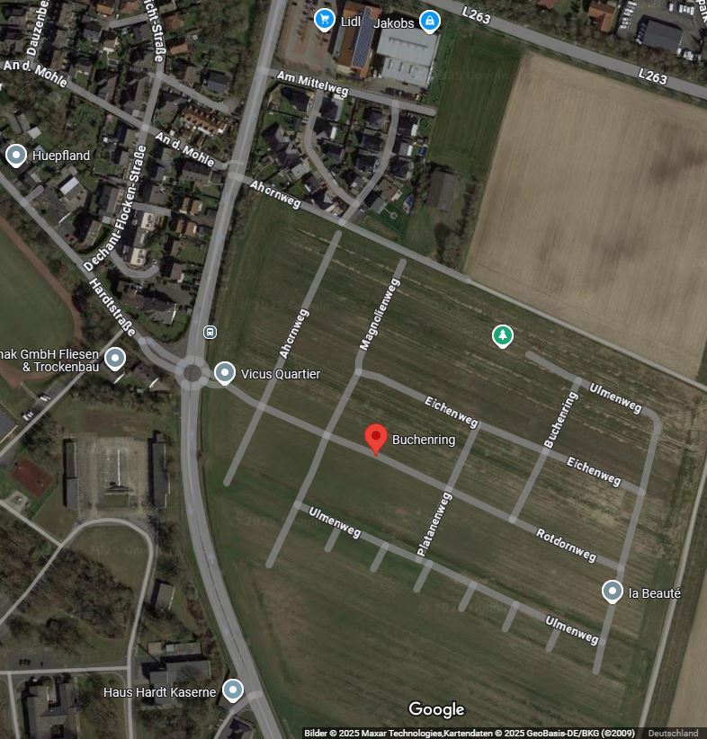 Ihre Informationen zum modernen und zukunftsorientierten Vicus Quartier in Nörvenich! Dieses Neubaugebiet erstreckt sich über 12 Hektar und bietet eine Vielzahl von Bauparzellen für unterschiedliche Wohnformen. Hier finden Sie Einfamilienhäuser, Doppelhäuser, Reihenhäuser und kleinere Mehrfamilienhäuser. Die Erschließung erfolgt über einen neu angelegten Kreisverkehr und die Schwester-Blanka-Straße. Ein verkehrsberuhigtes und grünes Umfeld erwartet Sie: mit Baumreihen, einem Abenteuerspielplatz, einer Blumen- und Kräuterwiese sowie einem 9.000 m² großen Regenrückhaltebecken.