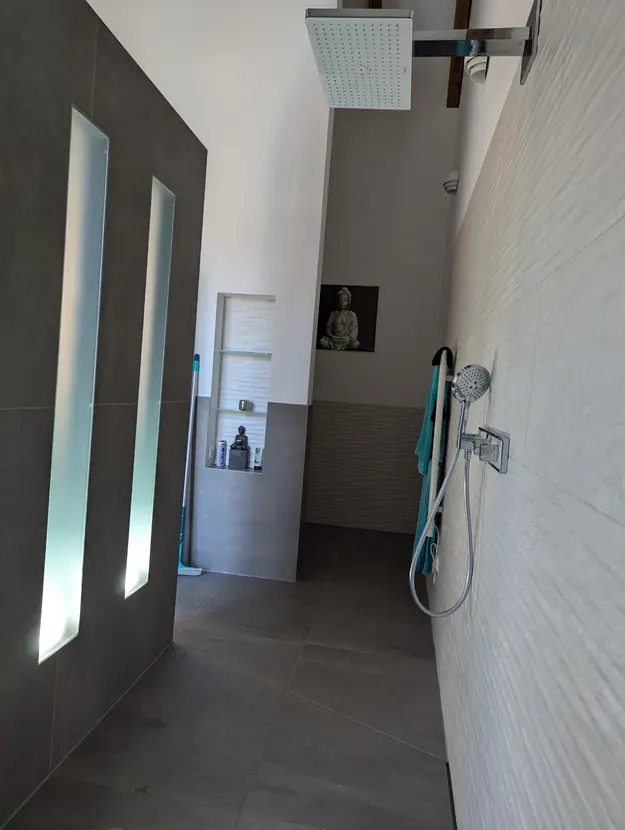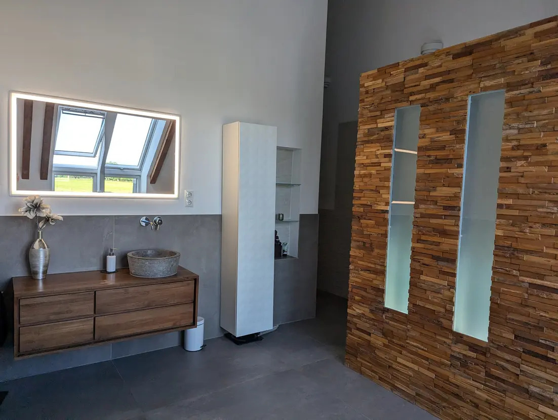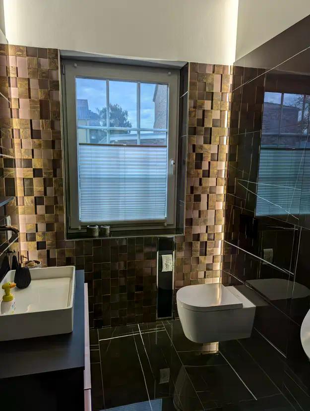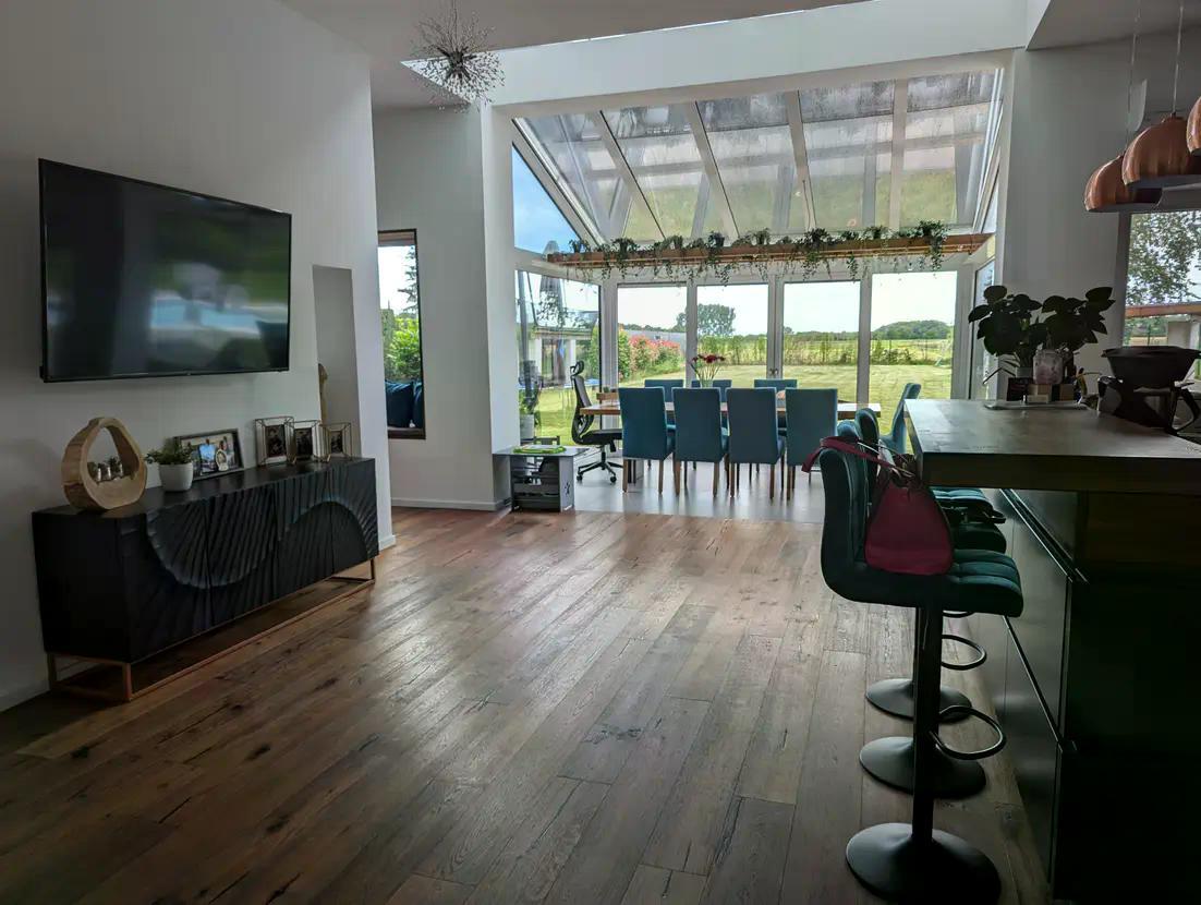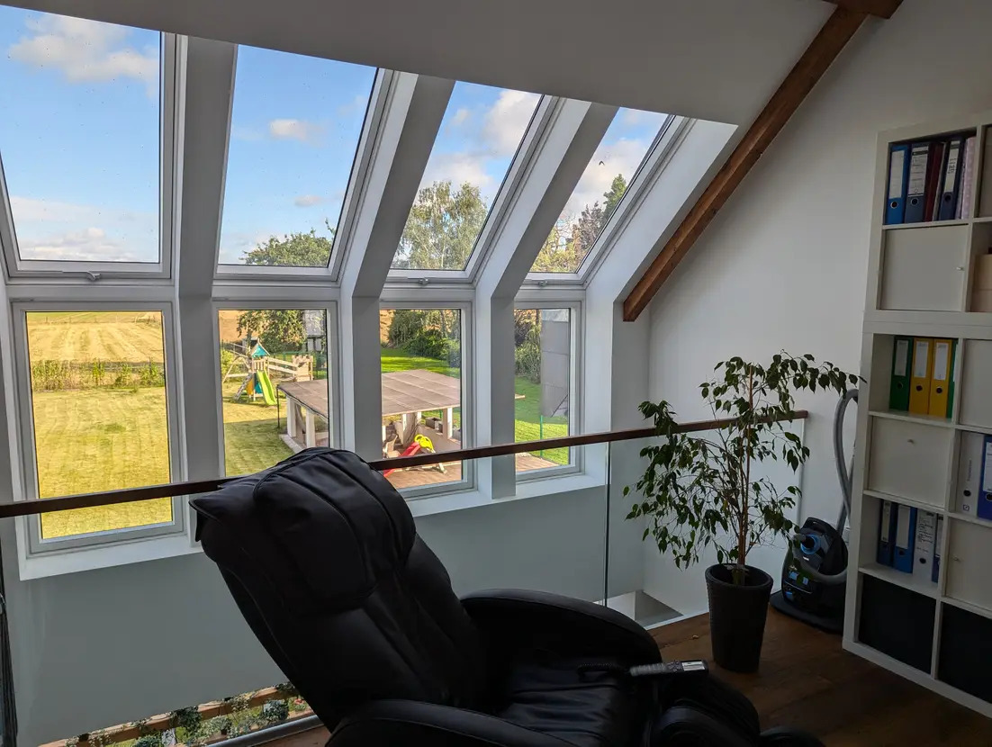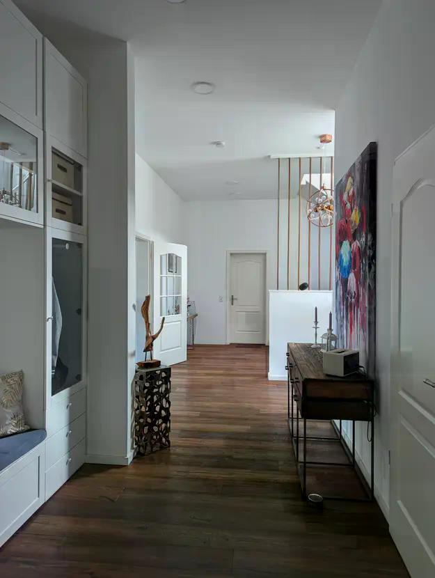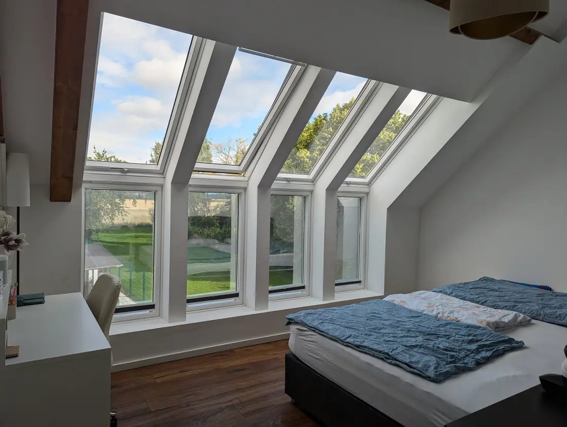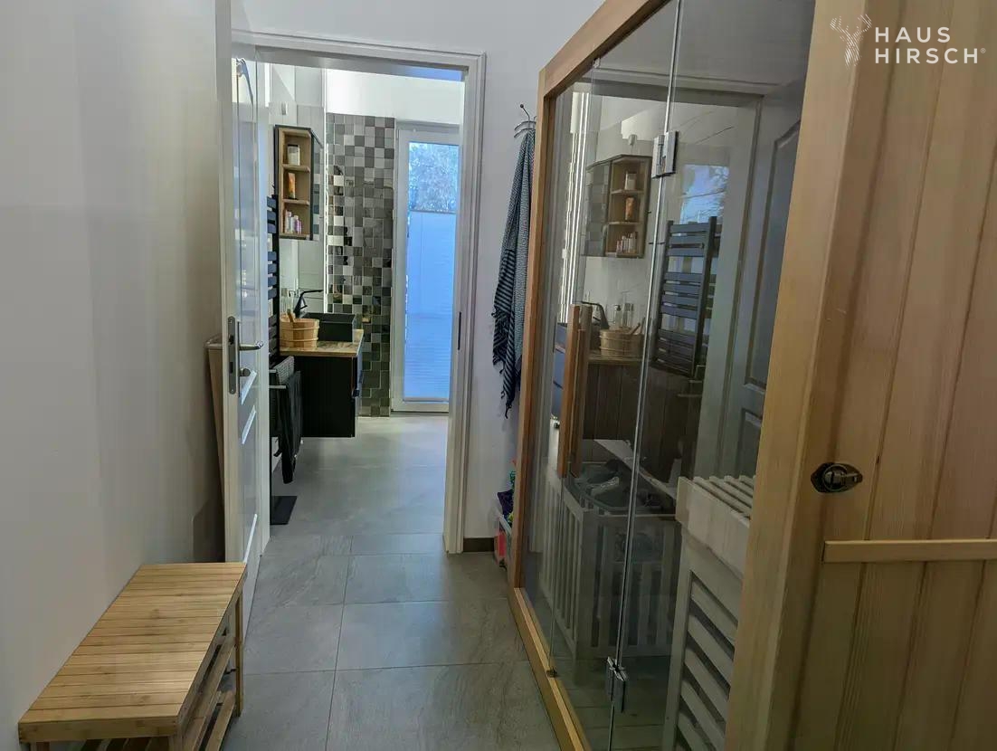 Dank bodentiefer Fenster mit Dreifachverglasung erstrahlen die Räume in einem lichtdurchfluteten Ambiente. Die Sicherheit wird durch einbruchhemmende Maßnahmen wie Pilzkopfzapfen an Türen und Fenstern, eine Mehrfachverriegelung an der Haustür und Außenkameras gewährleistet. Das Haus ist komplett mit Smart Home Technologie versehen.