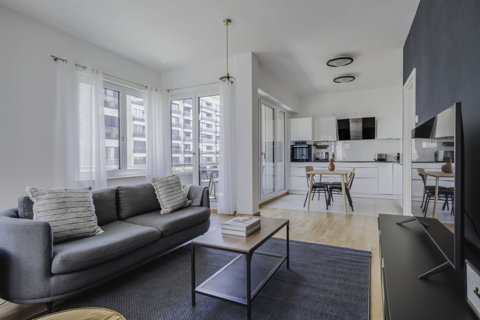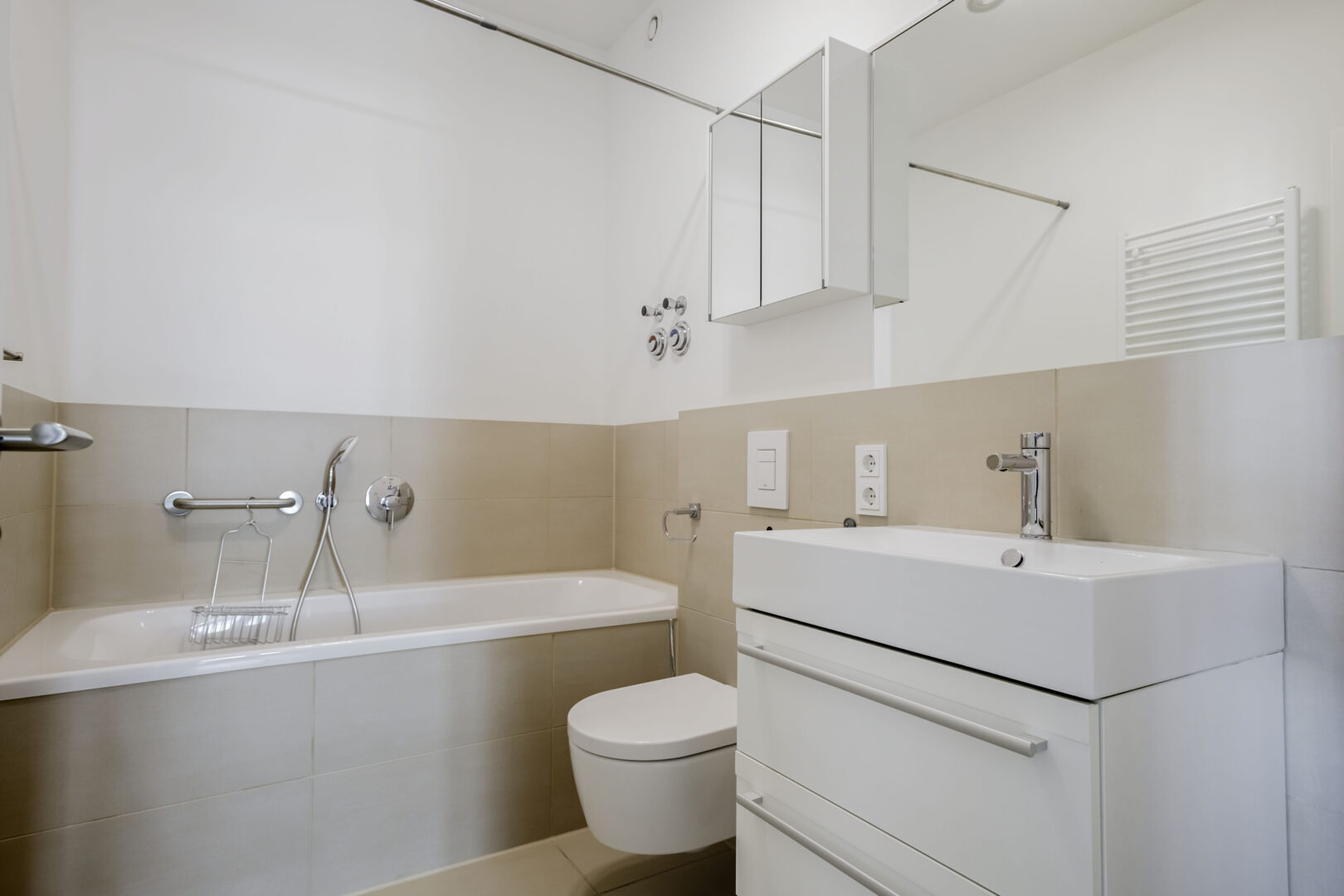 Diese perfekt geschnittene Wohnung befindet sich in einem hochwertigen Neubaukomplex aus dem Jahr 2020. Mit insgesamt 86 m² bietet sie Platz für 3 Zimmer, 2 Bäder und einen Balkon mit Süd-Ost Ausrichtung. Sie verfügt über ein Duschbad sowie ein Wannenbad und ist mit Parkett und Fußbodenheizung ausgestattet. Die voll ausgestattete Küche im modernen Stil lädt zum Kochen und Verweilen ein.