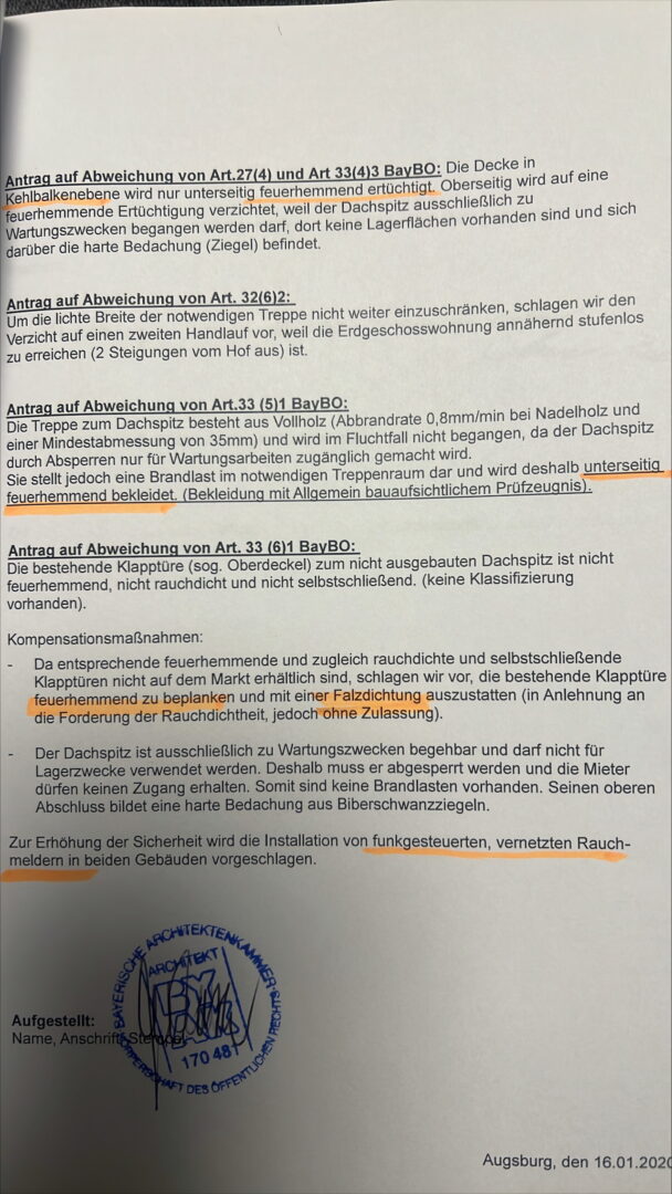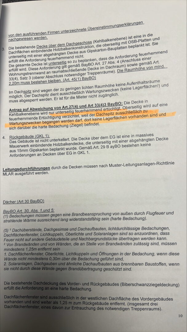 Der Dachspitz wurde entsprechend der Brandschutzvorgaben gedämmt; ein entsprechendes Prüfzeugnis liegt vor.