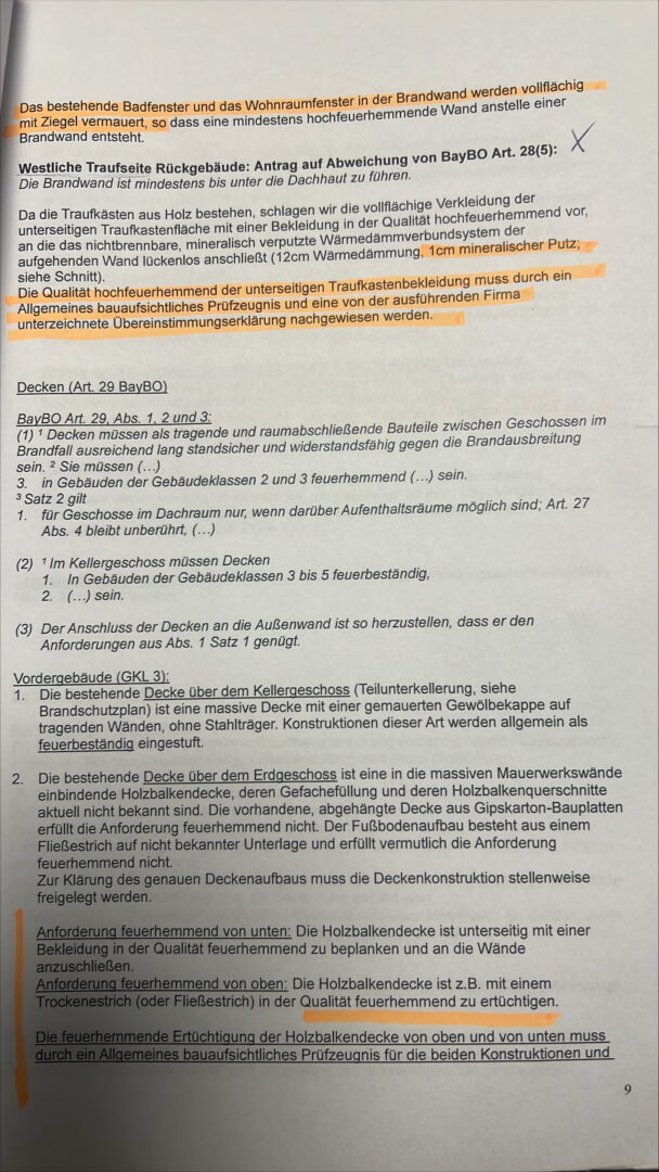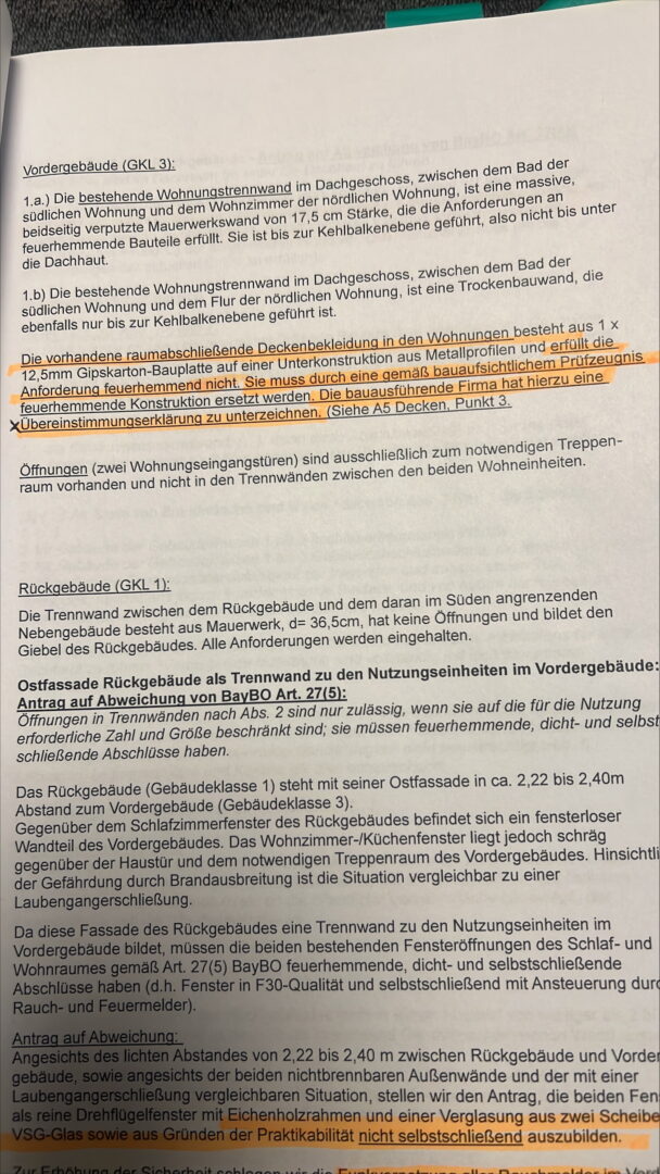 Die Deckenbekleidungen wurden durch feuerhemmende Konstruktionen ersetzt, ebenfalls mit vorhandenem Prüfzeugnis.