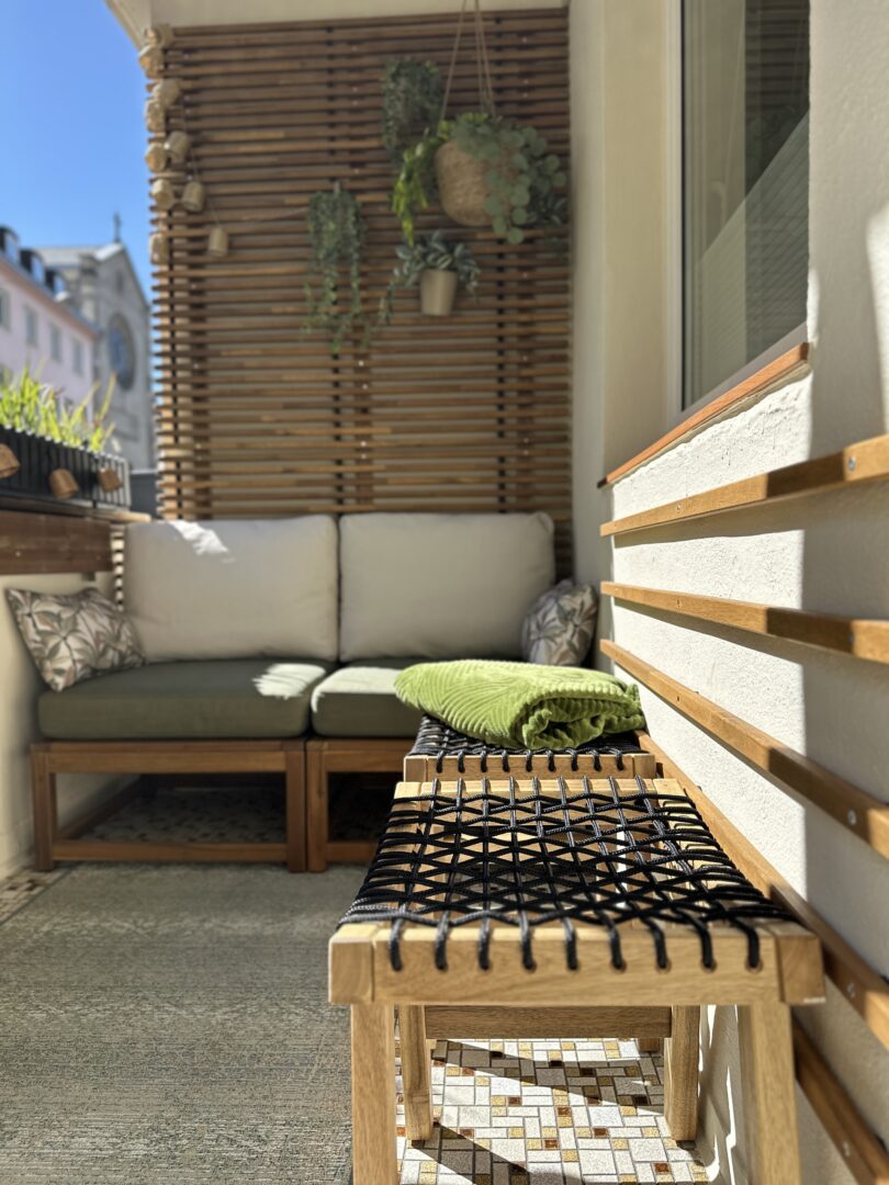Rechts vom Flur betritt man den offenen Wohn-, Koch- und Essbereich, der den Mittelpunkt der Wohnung bildet. Die moderne Einbauküche ist vollständig ausgestattet und lässt mit Spülmaschine, Backofen, Ceranfeld, Kühlschrank, Dunstabzug, Toaster und Kaffeemaschine keine Wünsche offen. Angrenzend an die Küche befindet sich der Essbereich, der harmonisch in das helle Wohnzimmer übergeht. Von hier aus führt der Weg hinaus auf den stilvoll möblierten Balkon, der zusätzlichen Raum zum Entspannen und Genießen bietet.