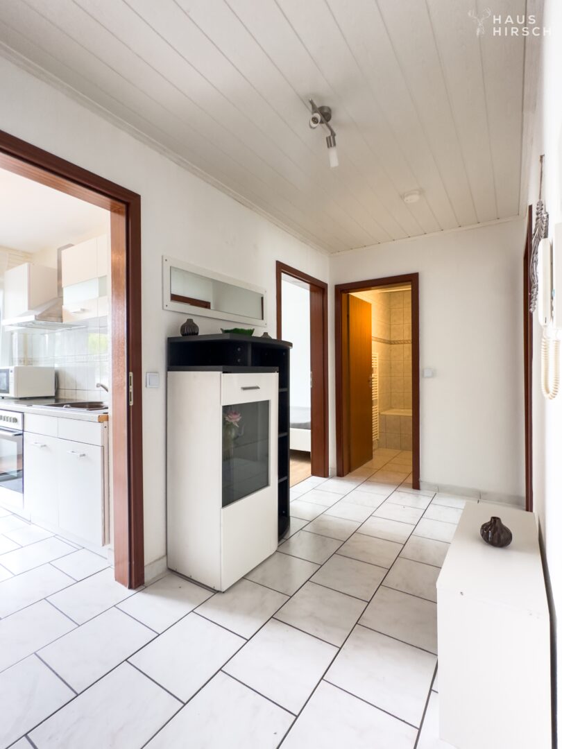 - Bodenbelag: Die Kombination aus Laminatböden in den Wohnräumen und pflegeleichten Fliesen in Bad und Küche schafft eine harmonische, warme Wohnatmosphäre.
