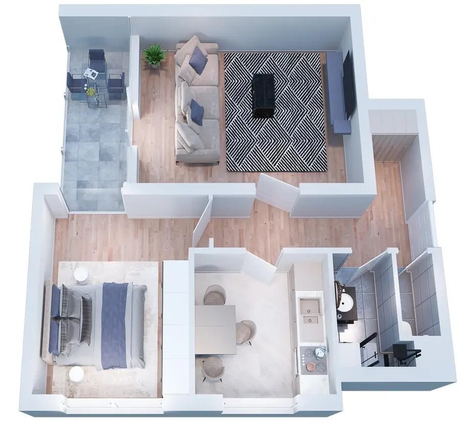 Die Wohnung empfängt Sie mit einem zentralen Flur, von dem alle Räume separat zugänglich sind. Das helle Wohnzimmer öffnet sich zu einem sonnigen Balkon, der zusätzlichen Freiraum im Grünen bietet. Das separate Schlafzimmer gewährleistet Ruhe und Privatsphäre. Eine praktische separate Küche ist bereits mit einer Einbauküche ausgestattet. Für zusätzlichen Komfort sorgen ein Badezimmer und ein separates WC. Ein Abstellraum sowie ein Kellerabteil bieten extra Stauraum.