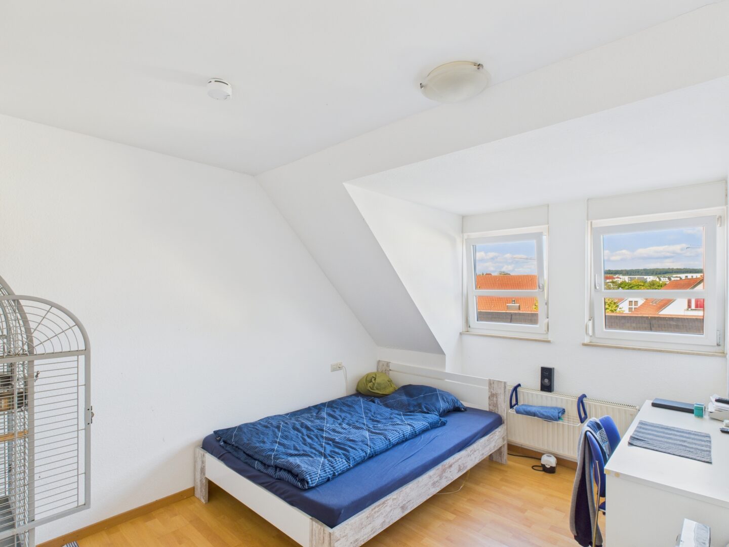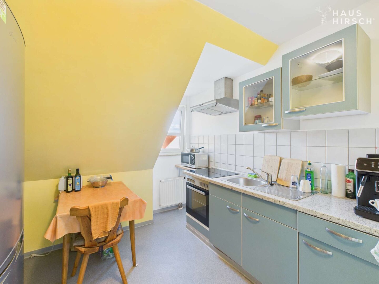 Der Wohn- und Essbereich wird durch die angrenzende Einbauküche perfekt ergänzt. Die Küche ist modern ausgestattet und bleibt im Objekt enthalten, sodass Sie sich sofort wohlfühlen können. Ein weiteres Highlight ist das geräumige Schlafzimmer, das ausreichend Platz für Ruhe und Entspannung bietet.