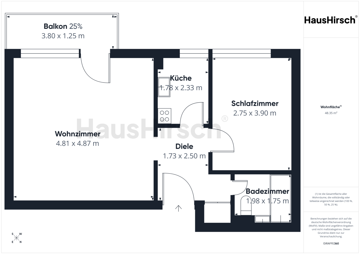 Vom Wohnzimmer aus gelangen Sie direkt auf den Balkon, der einen schönen Blick ins Grüne bietet und zusätzlichen Freiraum schafft. Ob zum Entspannen am Abend oder für einen ruhigen Start in den Tag – der Außenbereich erweitert den Wohnraum auf angenehme Weise.