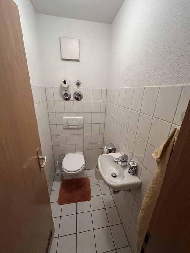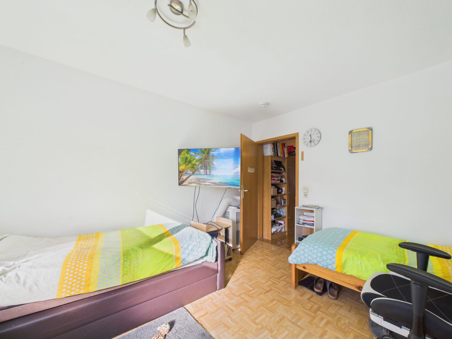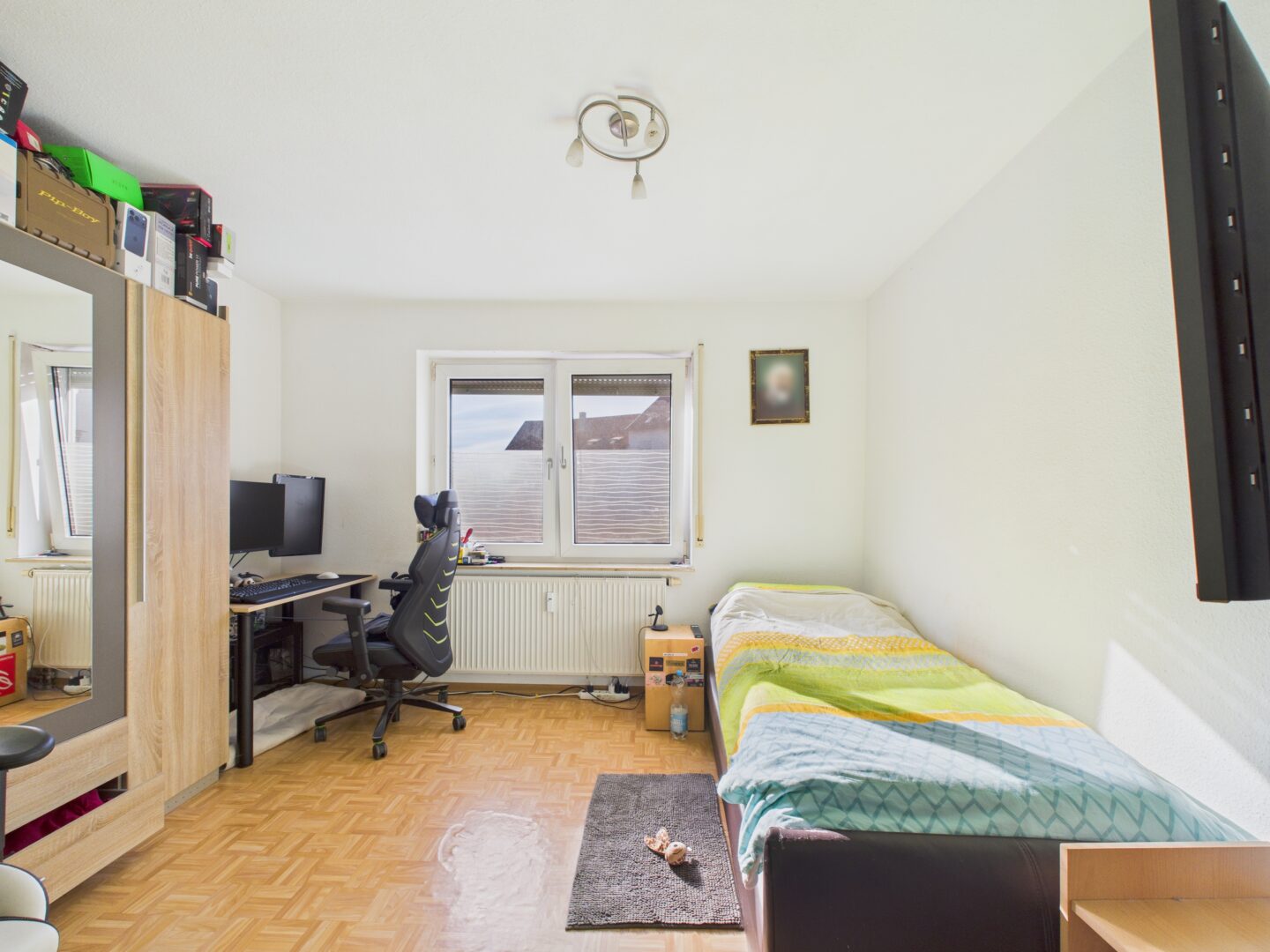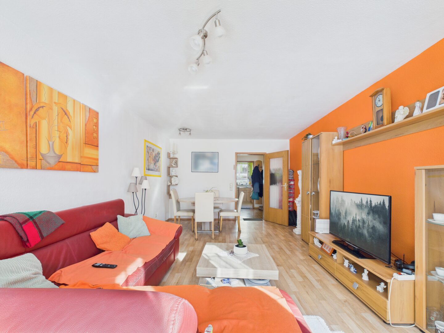 Neben dem einladenden Wohnzimmer stehen zwei Schlafzimmer zur Verfügung, die sich ideal als Eltern- und Kinderzimmer oder alternativ als Arbeits- bzw. Gästezimmer nutzen lassen. Ein Badezimmer mit Badewanne sowie ein separates Gäste-WC runden das Raumangebot ab.