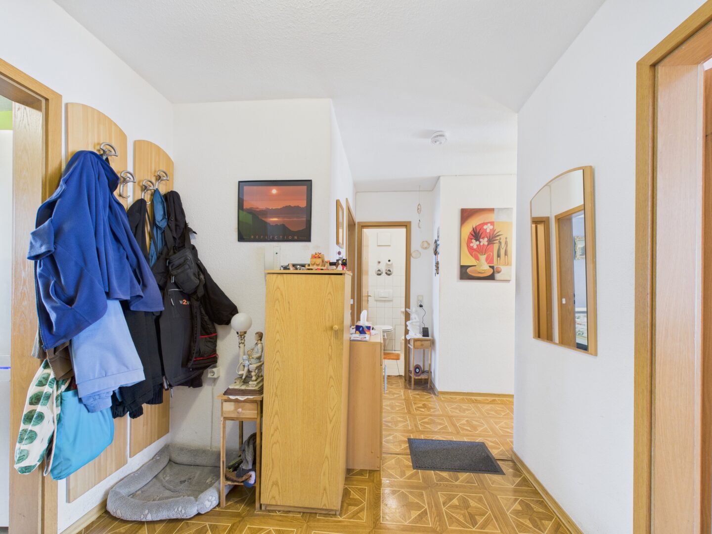 Der praktische Flur bietet ausreichend Stellmöglichkeiten für Garderobe und Stauraum. Zwei Stellplätze, einer vor dem Haus und einer in der Tiefgarage, sorgen für bequemes Parken. In dieser Lage lässt sich komfortables Wohnen ideal realisieren.
